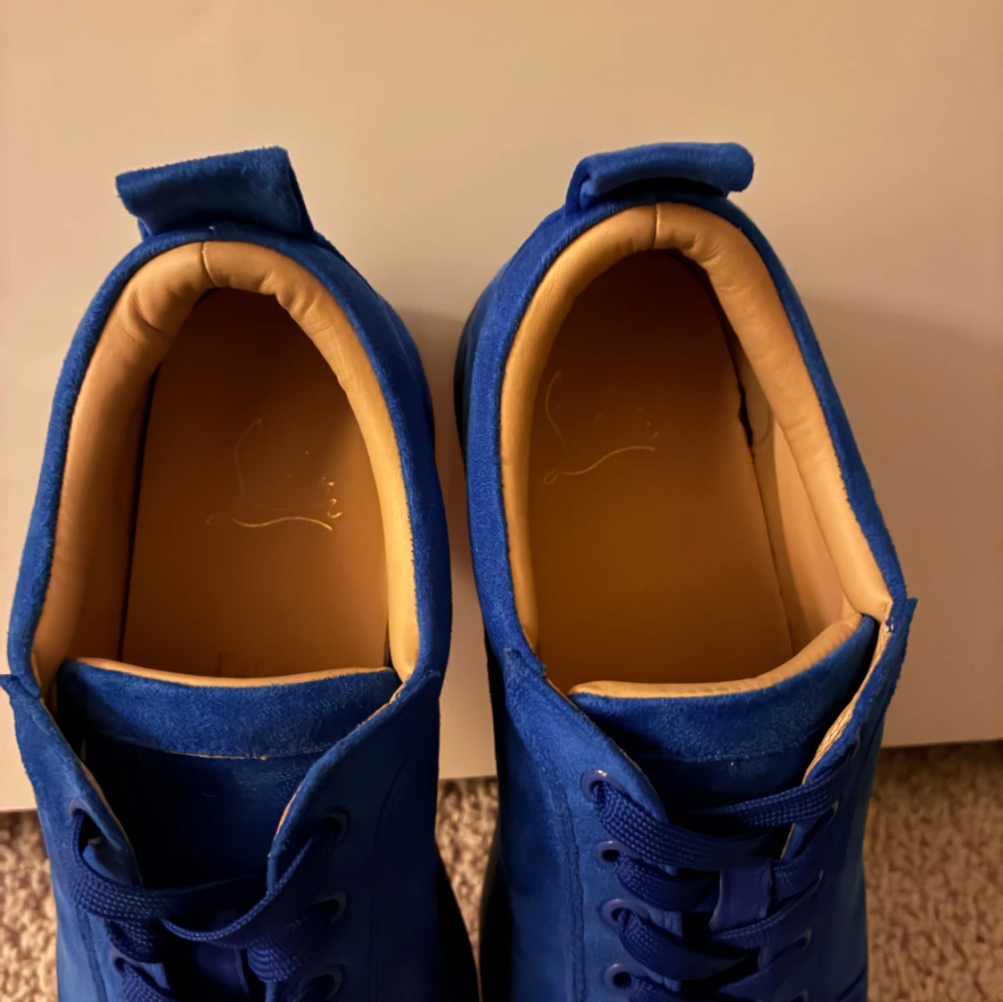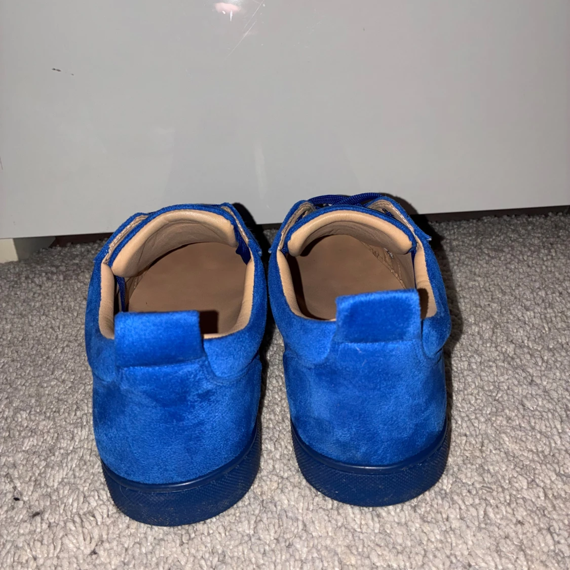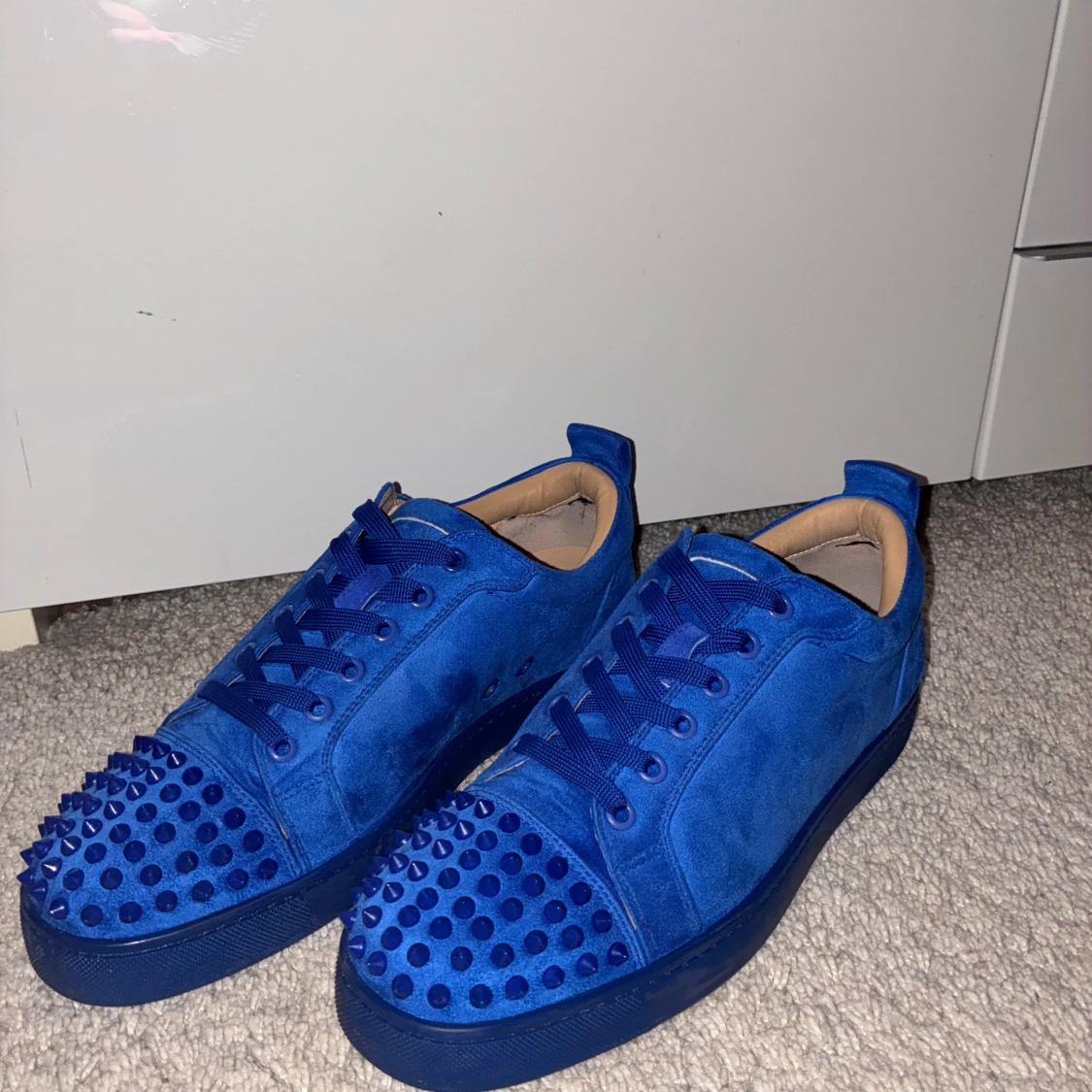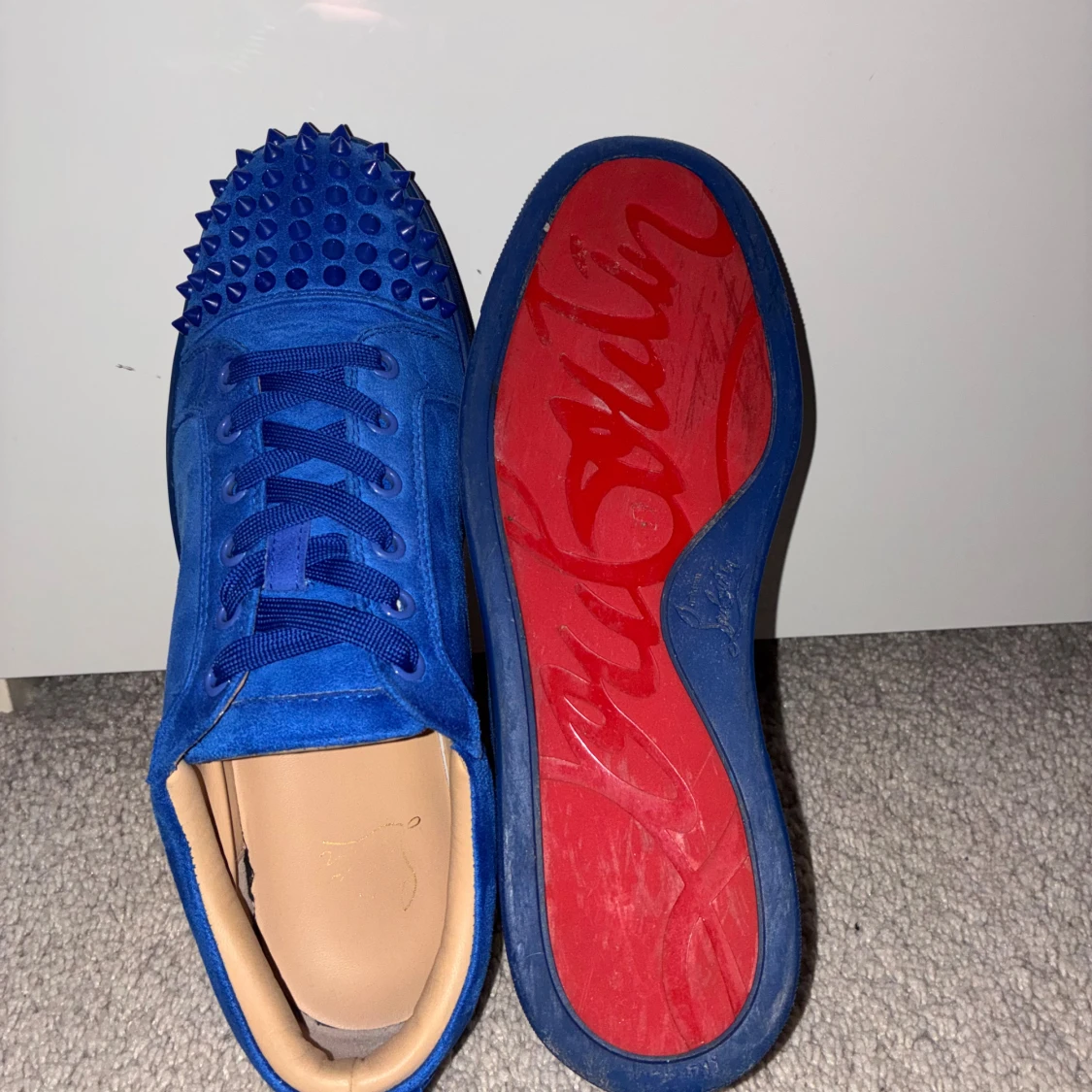 Säljer ett par Louboutins av mocka. Ett snyggt par för dig som vill sticka ut lite mer. Storlek: 43. Färg: Blå.