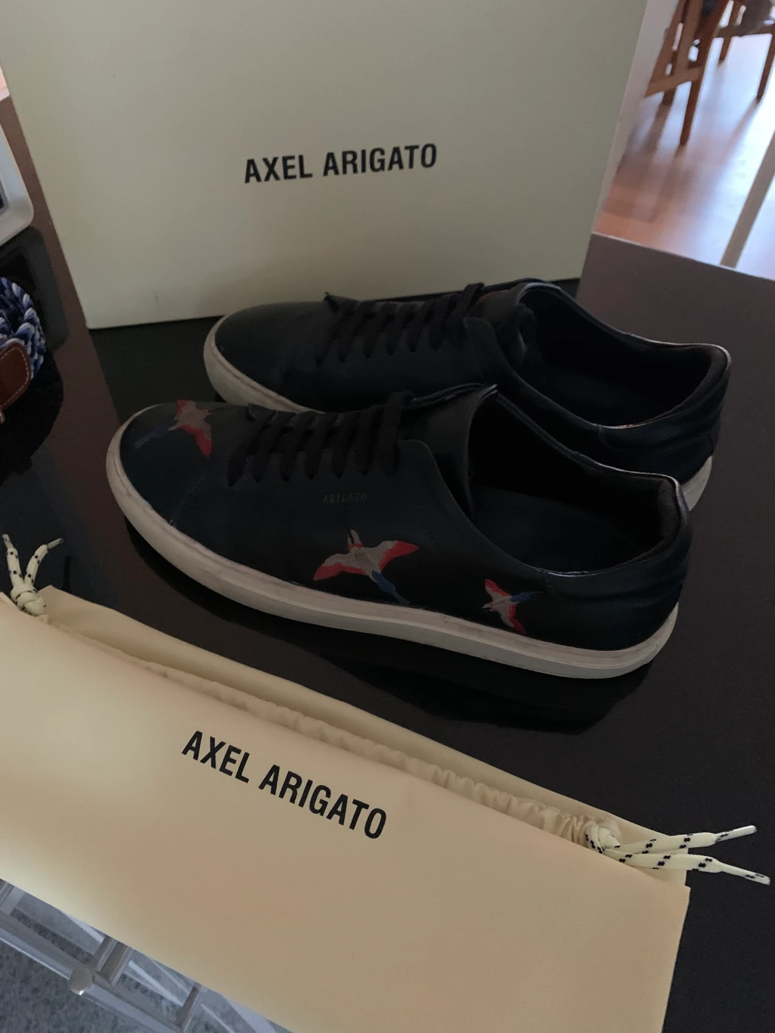 Säljer dessa fina Axel Arigato skorna. Storlek 43. Bra skick. Nypris runt 2500 mitt pris 1100. Box och dustbag medföljer vid köp. Hör av dig om du har några frågor. Pris kan diskuteras vid snabb affär!