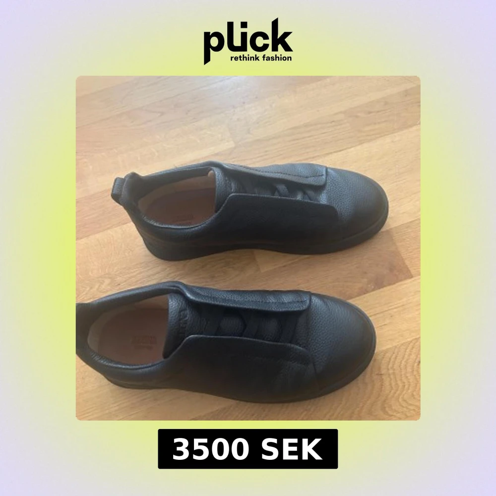 Snygga svarta sneakers från Zegna i mjukt, strukturerat skinn. Skorna har en stilren design med dold snörning och rund tå. Perfekta för dig som gillar minimalistisk och clean stil. Passar till det mesta och ger en lyxig känsla till outfiten.