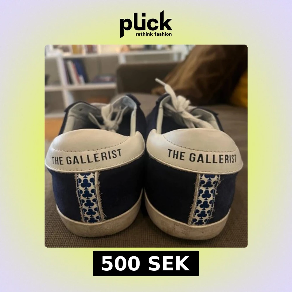 Snygga sneakers i mörkblå mocka med vita detaljer och snörning. Skorna har en unik klubb-symbol på sidan och mönstrad blå-vit rand baktill. Perfekta för dig som vill sticka ut med stilrena men ändå lekfulla skor.
