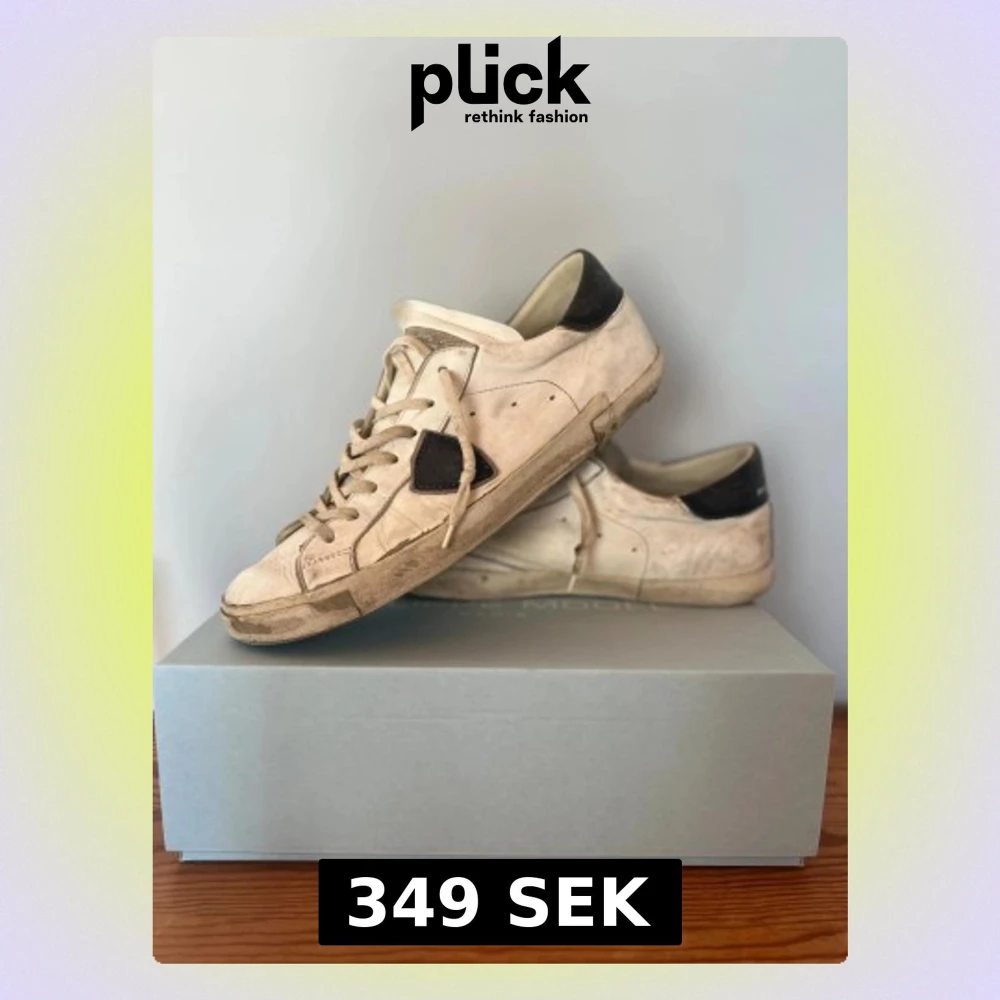 Skorna är väldigt andvända, och defekter förekommer sulan e även trasig men går fortfarande och andvända| mest smutsiga och mycket går säkert bort lätt| Strolek 44 men passar 43-45 box ingår|