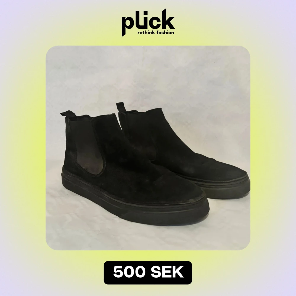 Snygga svarta Chelsea boots i mocka med elastiska paneler på sidorna för enkel på- och avtagning. De har en robust sula som ger bra grepp. Använda endast några få gånger, nyskick.