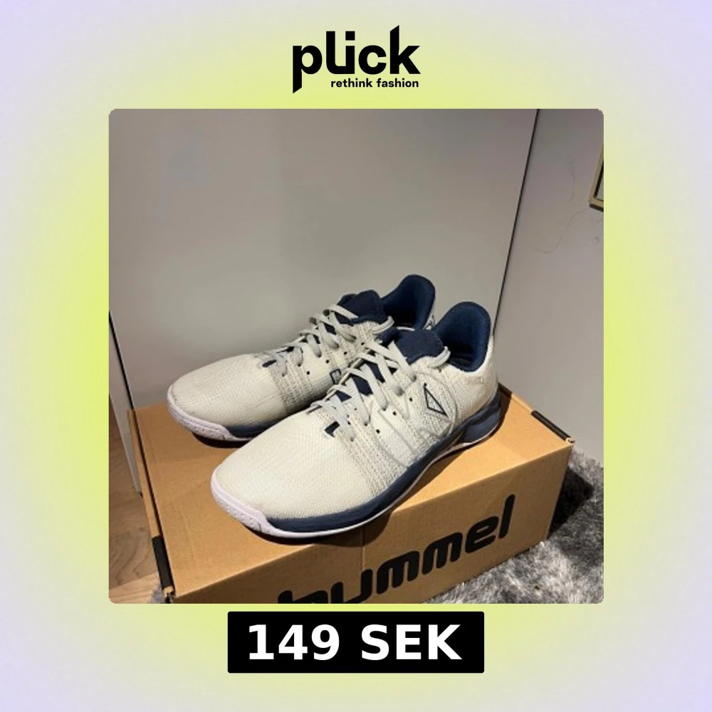 Snygga träningsskor från Kempa i vitt och marinblått med sportig design. Ovandelen är i slitstark syntet med ventilerande mesh och snörning framtill. Sulan är vit med blå detaljer och har bra grepp, perfekt för inomhussport. Skorna har rund tå och bekväm stoppning runt ankeln. Använda under en träning och säljer för de inte passar foten. HELT NYA