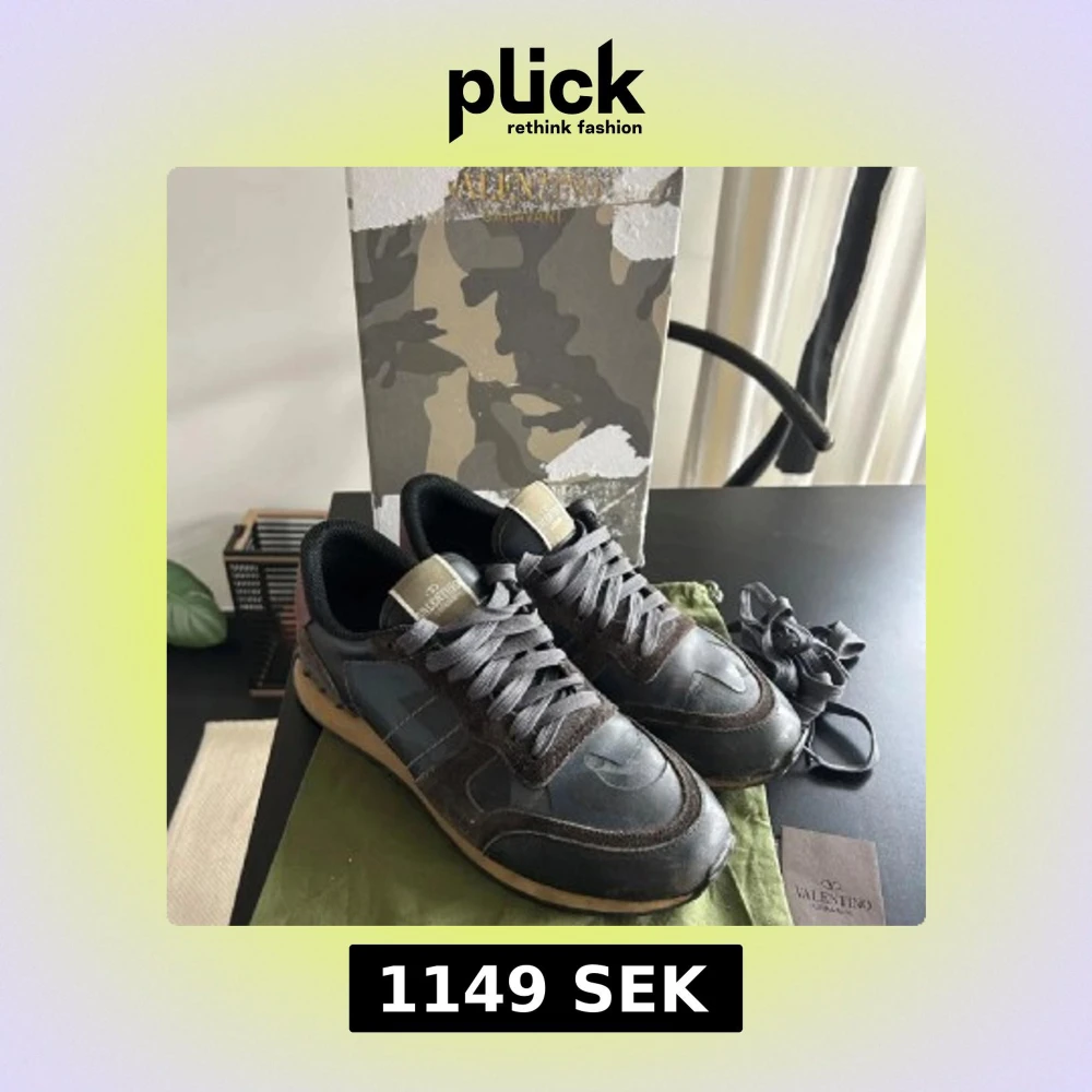 Säljer ett par valentino rockrunners i strl 44. (Självklart äkta). Skorna har mycket kvar att ge och är perfekta nu till våren! Boxen är tyvärr skadad då förra ägaren tejpat direkt på boxen. Storleken är normal och priset är inte hugget i sten, byten är också intressanta. Skorna har defekter längst fram på insidan därav det låga priset, Allt på bilden medföljer!