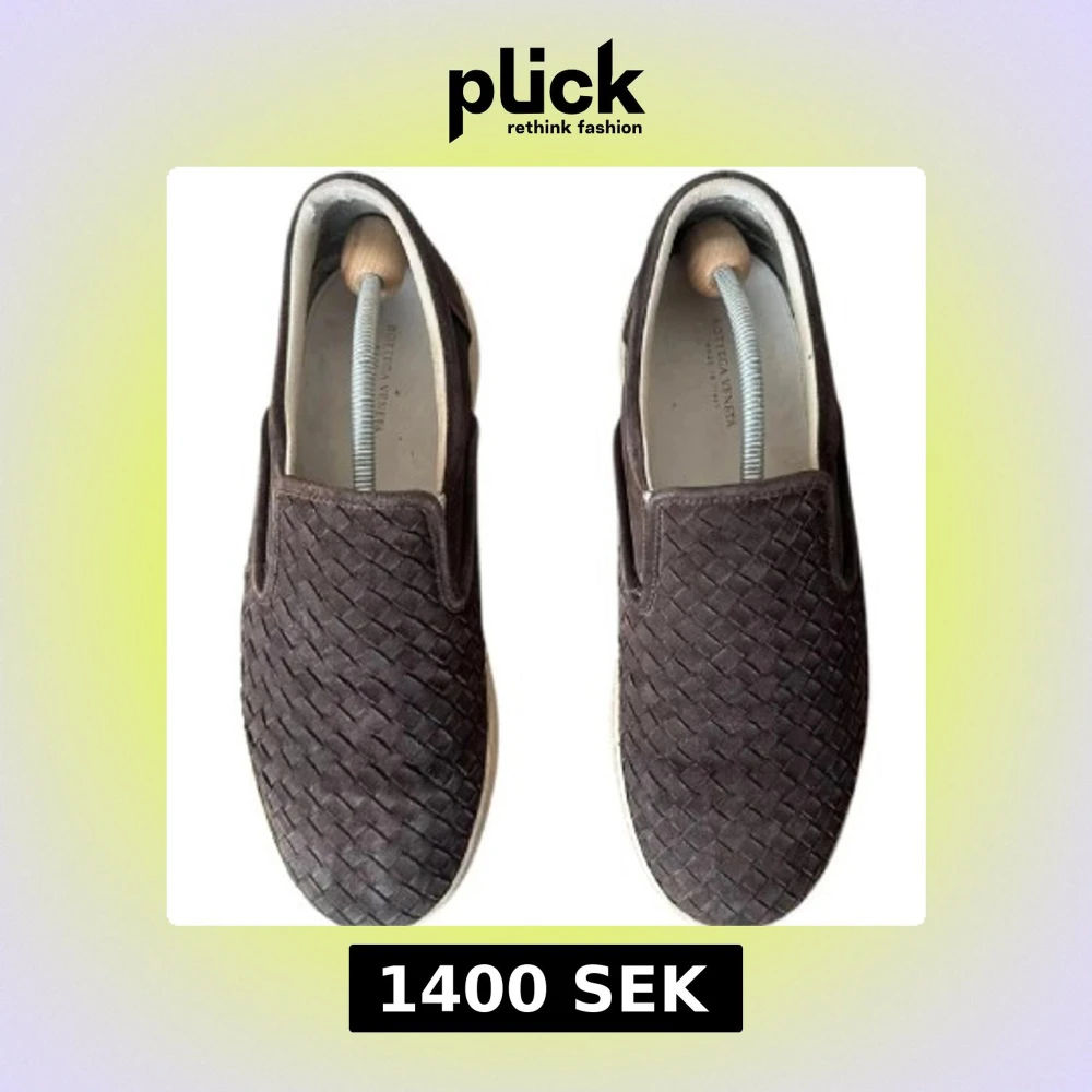 Snygga slip-on sneakers från Bottega Veneta i mörkbrunt flätat skinn. Skorna har en vit platt sula och klassisk rund tå. Den flätade designen ger en lyxig och unik känsla, perfekt för dig som gillar stilrena detaljer och exklusiva material.