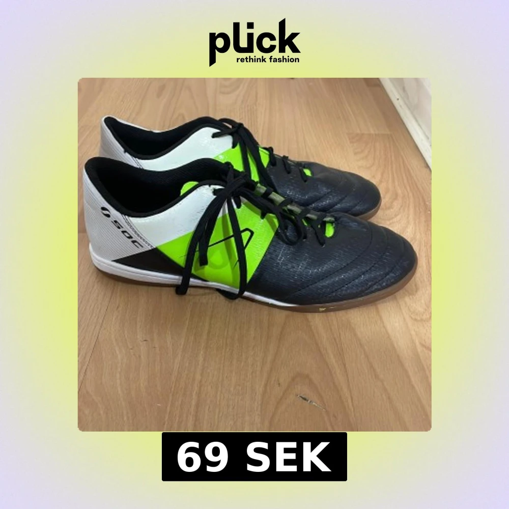 Säljer ett par snygga inomhusfotbollsskor från SOC i svart, med bra pris ock kvalitet.