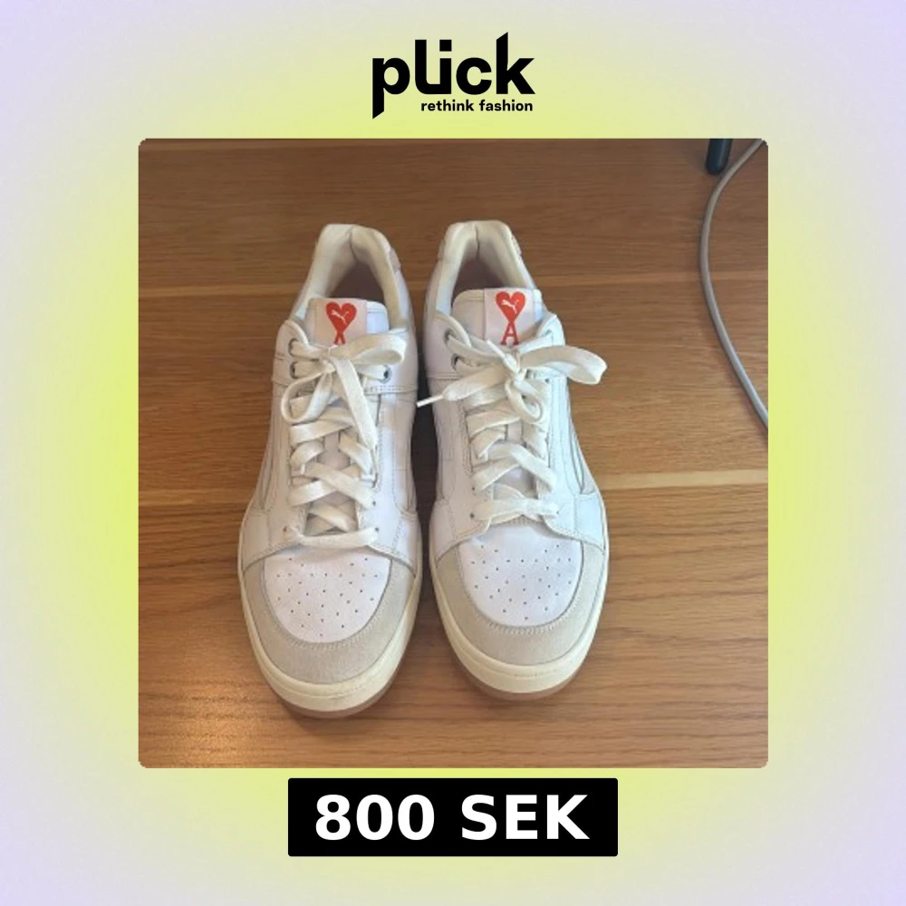 Säljer ett par Puma x Ami Slipstream sneakers i vitt och beige med snygga röda Ami-hjärtan. Extra orginal röda skosnören medföljer. Ovandelen är i skinn och mocka för en clean och modern vibe. Skorna är använda endast vid två tillfällen därav mycket bra skick.