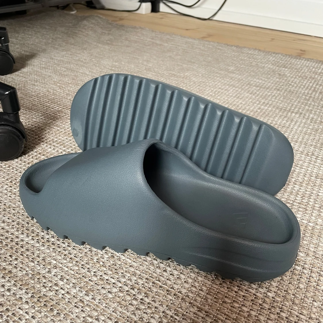 Säljer ett par mörkgrå Adidas slides med öppen tå och räfflad sula. De är tillverkade i syntetmaterial och har en minimalistisk design med Adidas-logga på fotbädden. Perfekta för sommaren eller att chilla hemma. Dm för frågor👌😀