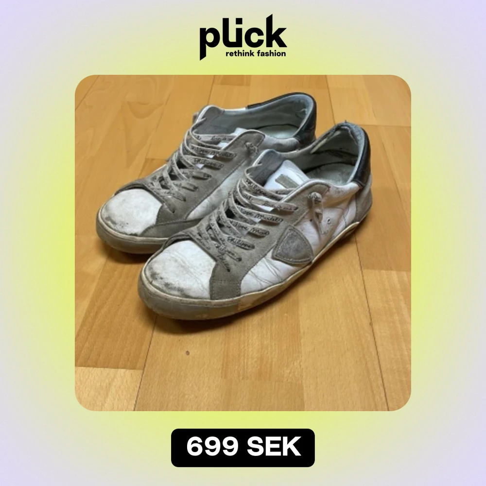 Ett par använda Philippe model skor som har hål i sulan där bak. Inte särskilt bra skick men funkar.