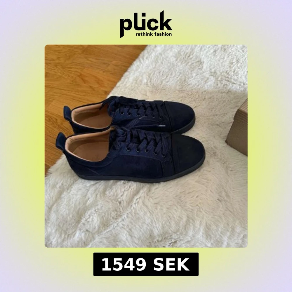 Säljer ett par snygga mörkblå sneakers från Christian Louboutin med klassisk röd sula. Fraktar samma dag🚙