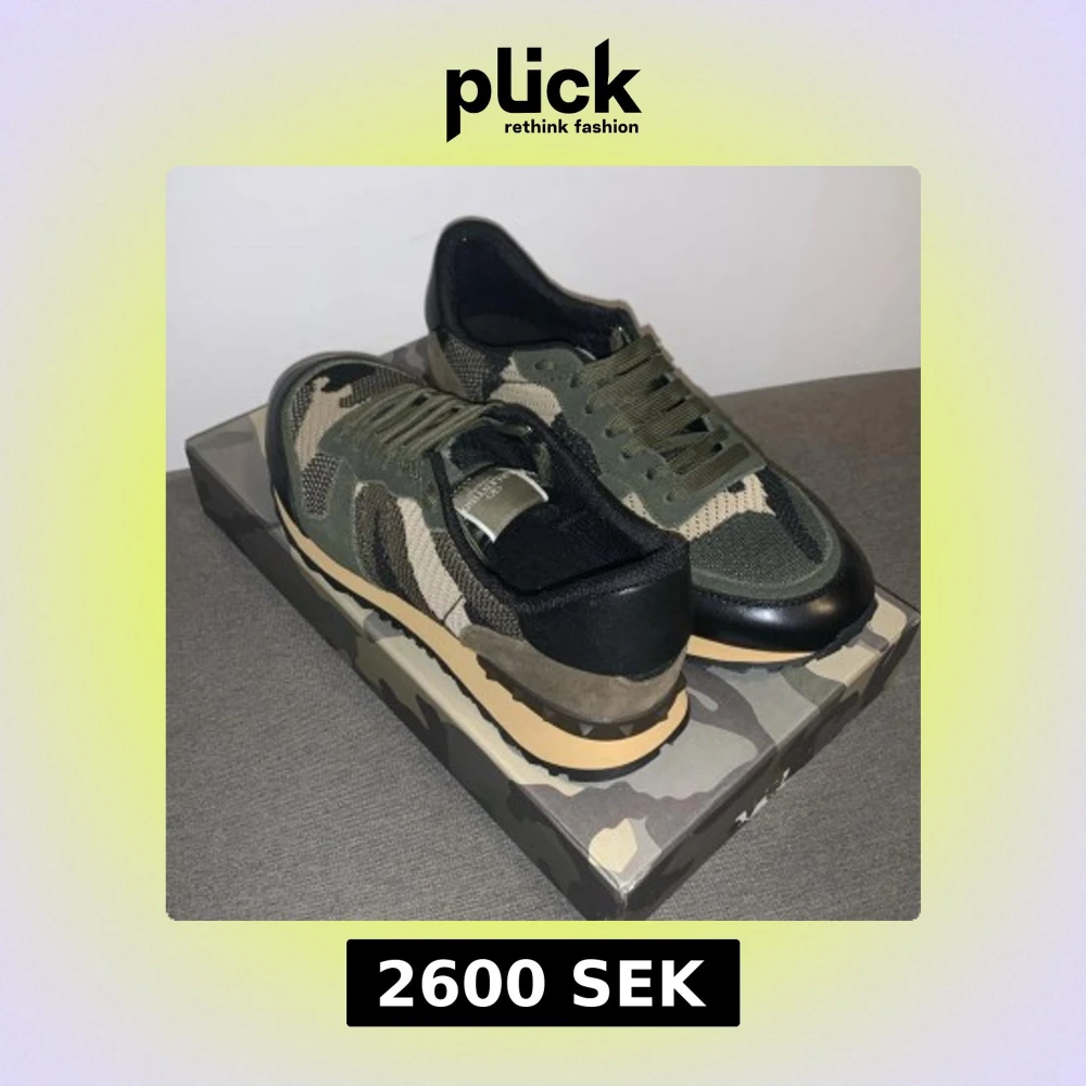 Snygga Valentino Garavani sneakers med ett coolt camouflage-mönster. Skorna har snörning och en kombination av gröna och svarta detaljer. Perfekta för en trendig look. 2 slitningar på lådan men inget stort, Passar även bra på storlek 44