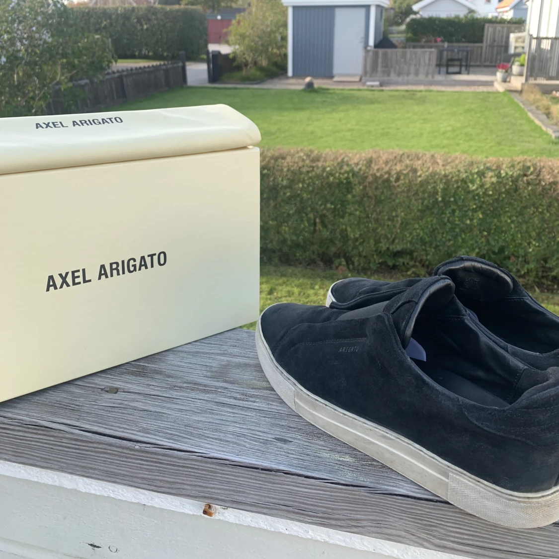 Säljer ett par Axel Arigato laceless 360. Använt skick, Storlek 45. Finns små defekter men inget man tänker på. Box och dustbag medföljer. Hör av er om ni har några frågor. Pris kan diskuteras vid snabb affär!