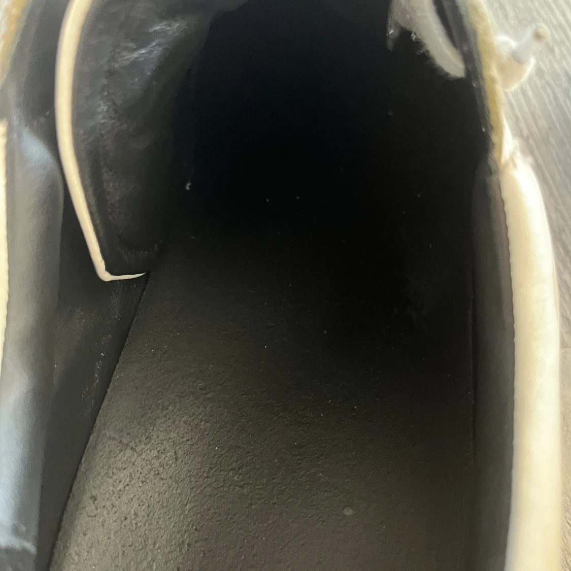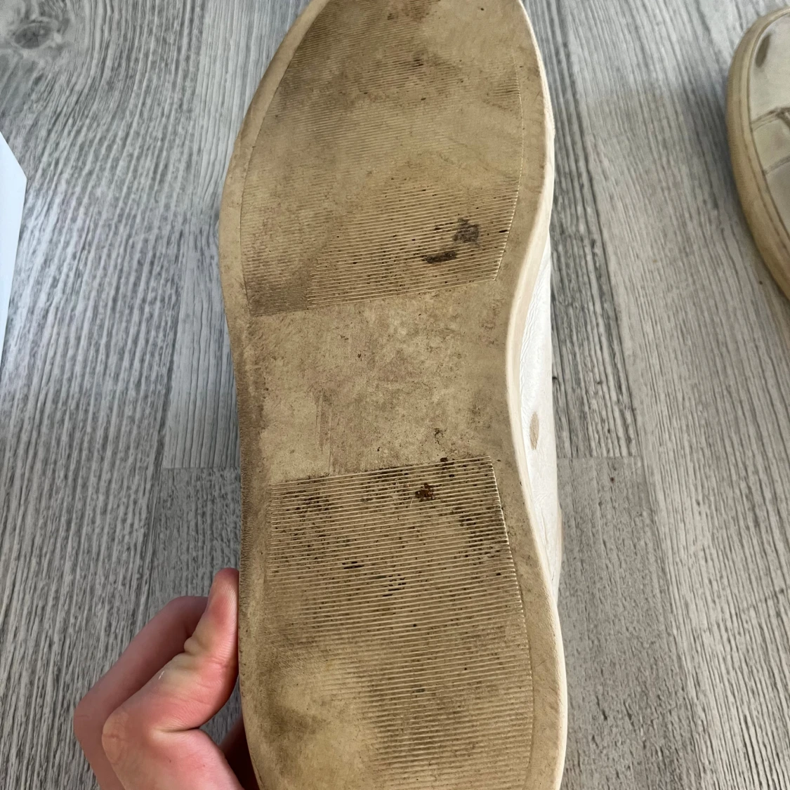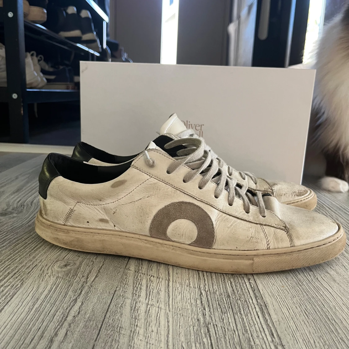 Säljer ett par vita sneakers från Oliver Cabell med svart häl och grå cirkeldetalj på sidan. Skorna har snörning och är tillverkade i skinn med platt sula. Kommer i originalkartong och dustbag. Perfekta för dig som gillar stilrena och trendiga sneakers.