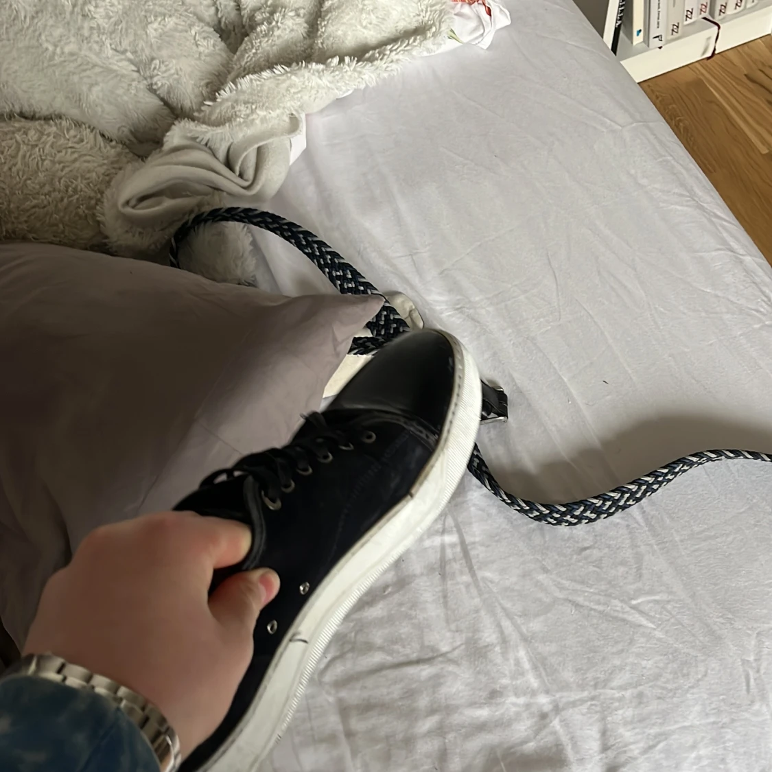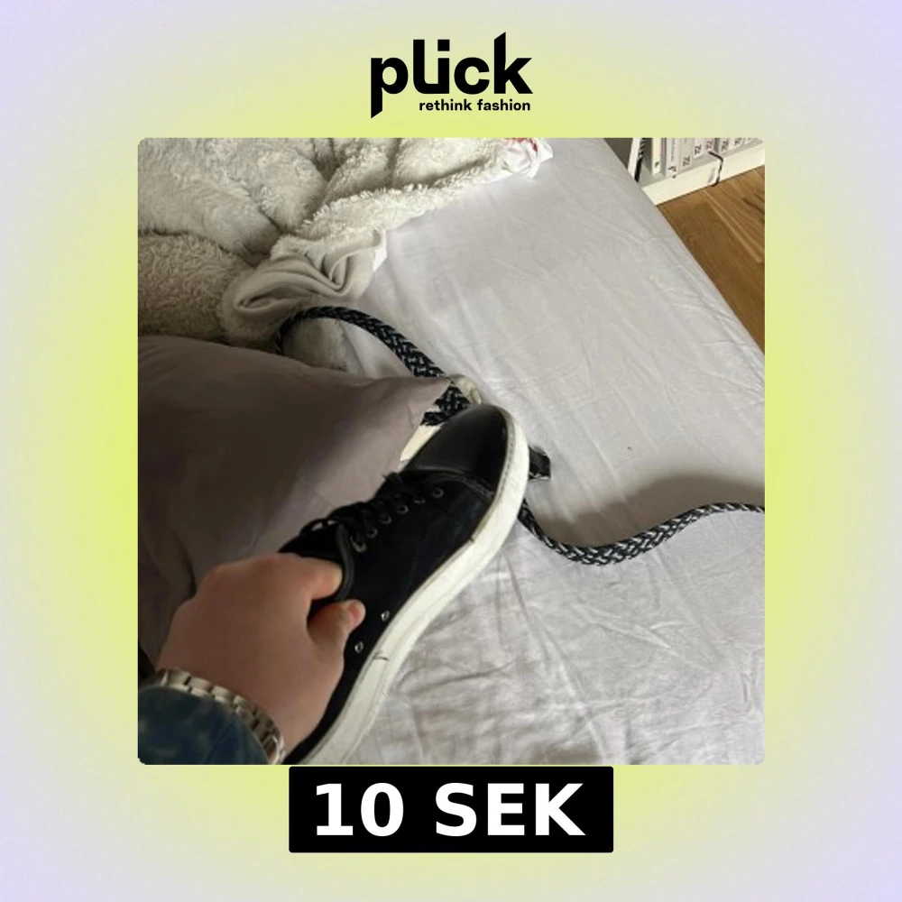 Snygga svarta sneakers med vit sula och snörning. Perfekta för en avslappnad stil och passar till många olika outfits.