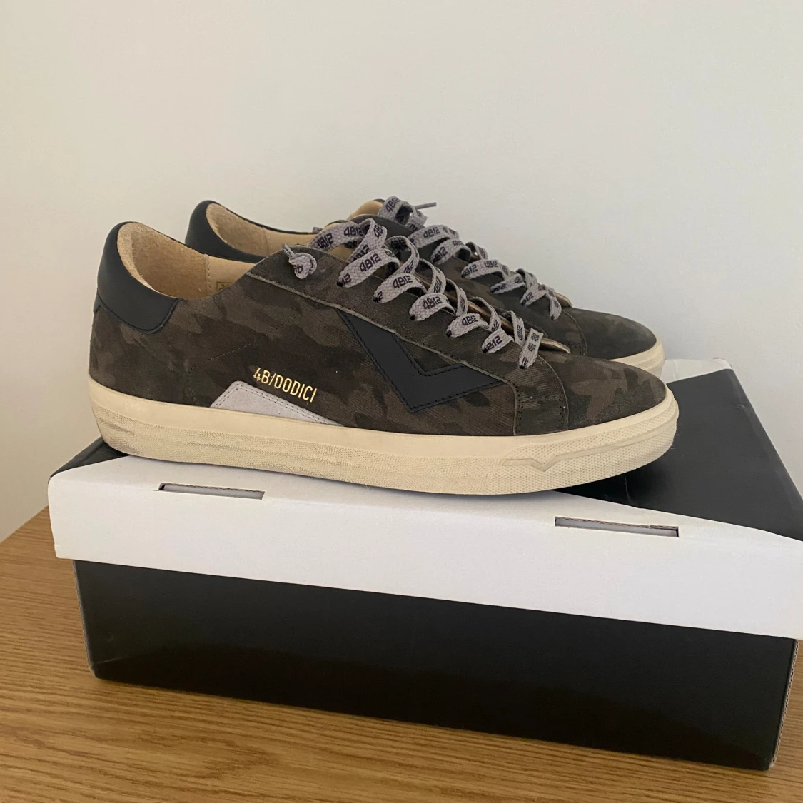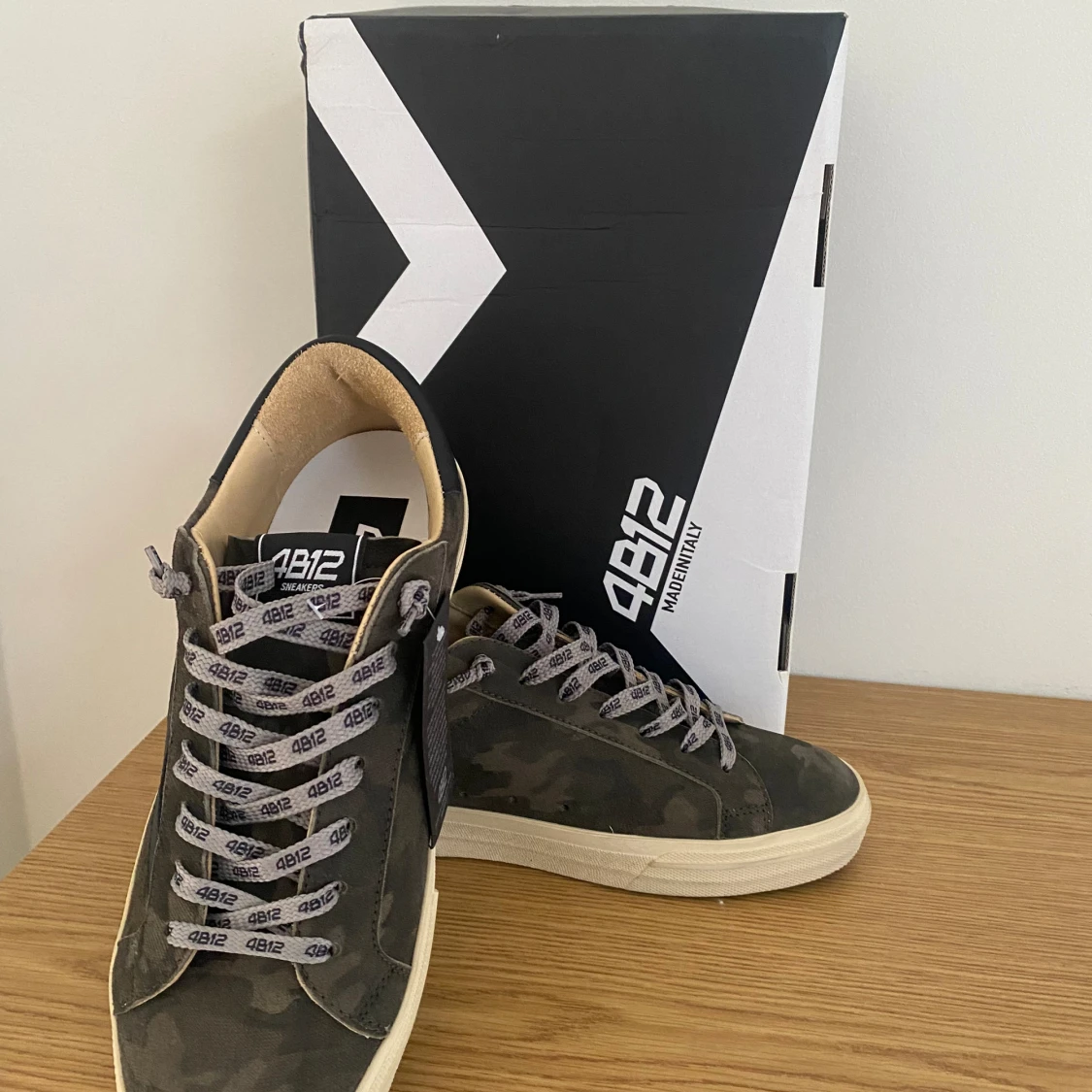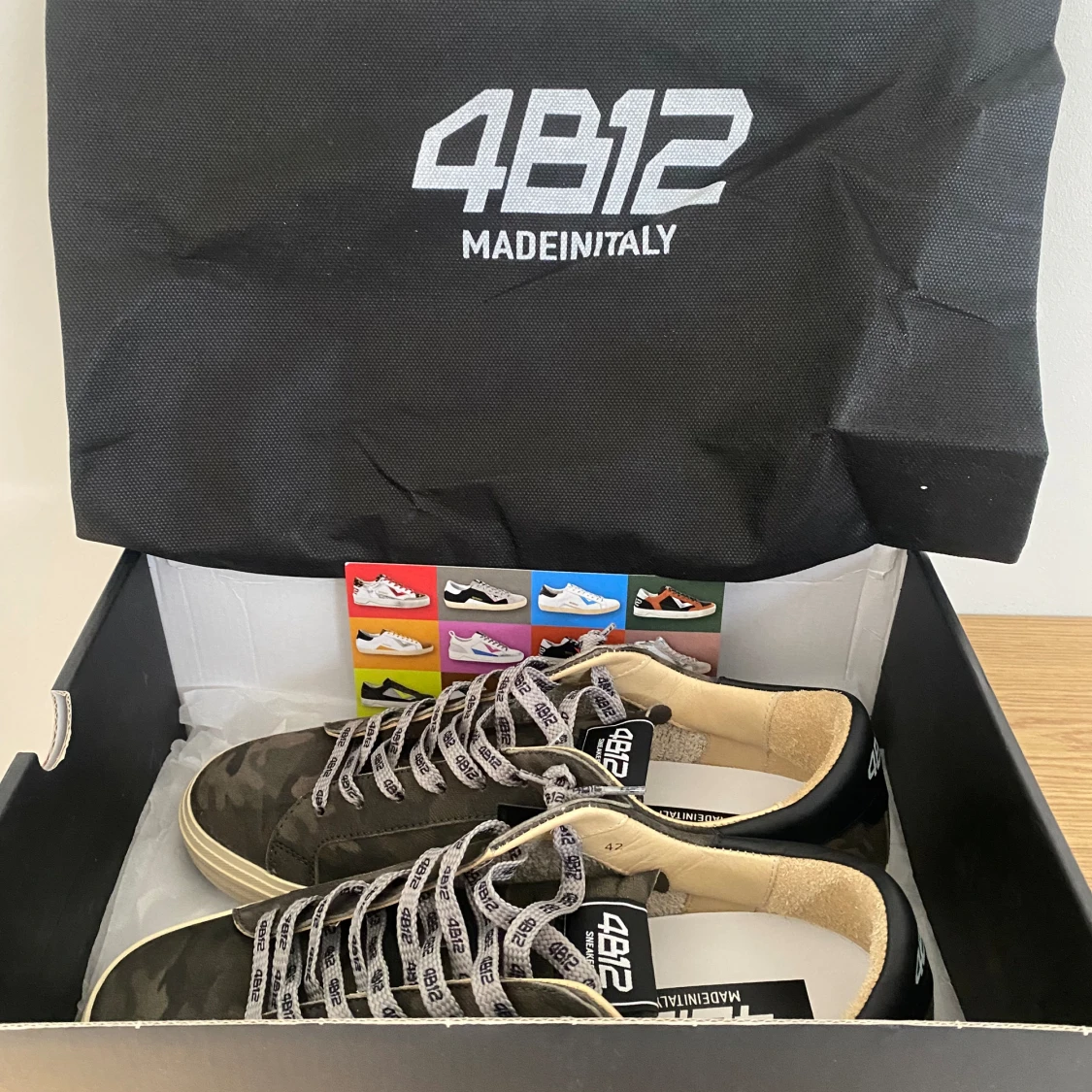 Säljer ett helt par nya skor från 4b12. Storlek 42, passar ca 41-43. Sprillans nya, aldrig använda. Allt original medföljer. Svåra att få tag på i Sverige då de måste importeras från Italien. Dessa kan fraktas eller mötas upp i Stockholm vid köp.