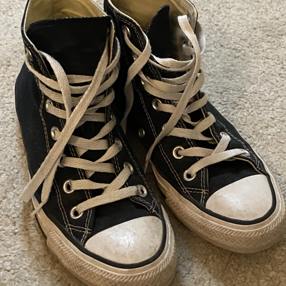 Säljer dessa svarta converse i storlek 37,5. Bra skick dock lite smutsiga men det är lätt att få bort. Nypris 800 kr. Betalar endast med Swish 💕