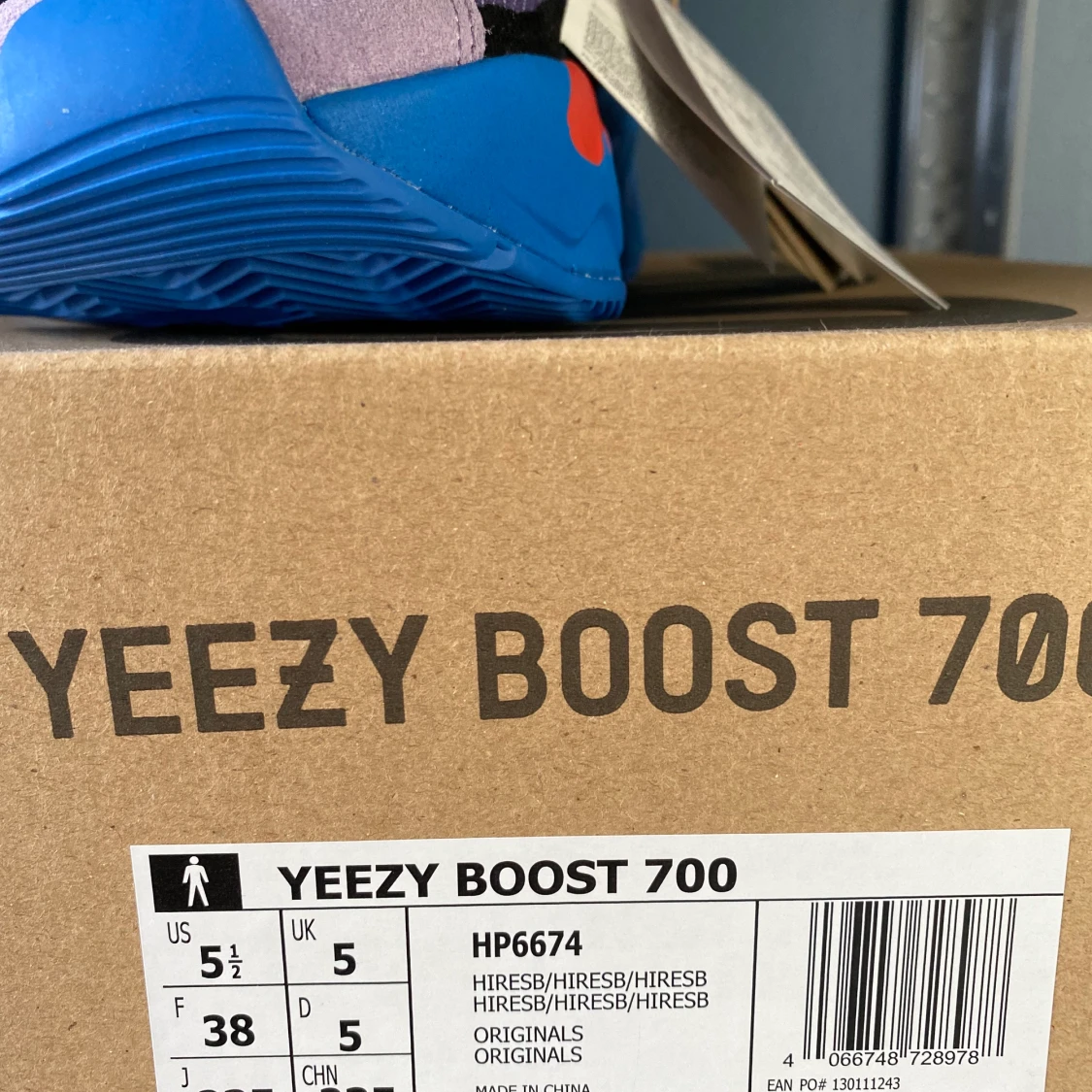 Säljer nu dessa Yeezy Boost 700 V1 Hi-Res Blue som är köpta från Adidas. De är storlek 38 Eu och helt nya och oanvända, hör av dig vid frågor eller i behov av fler bilder
