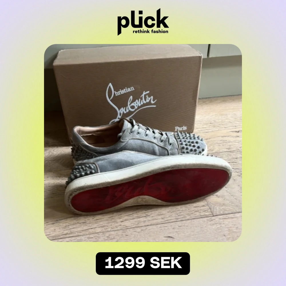 Hej säljer mina gråa Louboutin med piggar”äkta” i storlek 45 passar 46 säljer dem pga de är för stora skick är 8/10 men de har tappat tre stycken piggar så det är därför jag sätter lågt pris skriv gärna om ni har några frågor;)