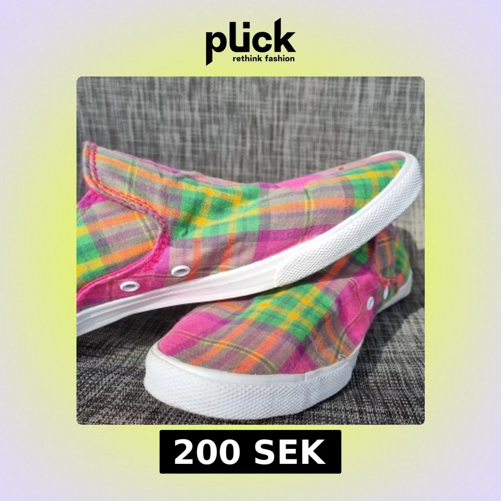 Färgglada sneakers från Playboy med rutigt mönster. Skorna har en platt design och är tillverkade i bomullstyg.