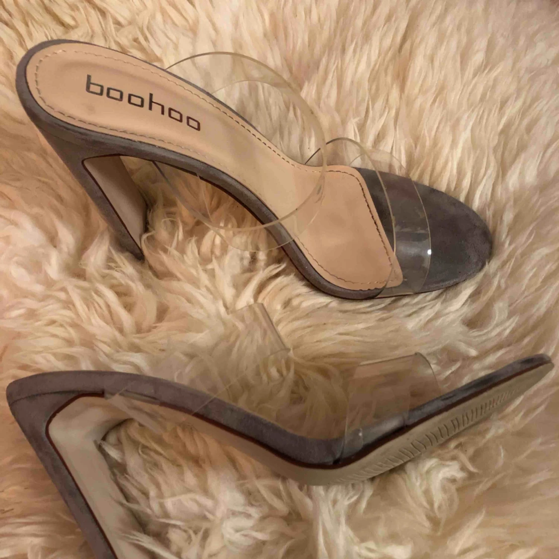 Gråa klackskor i stl 5 (38), använda 1 gång därav bra skick.