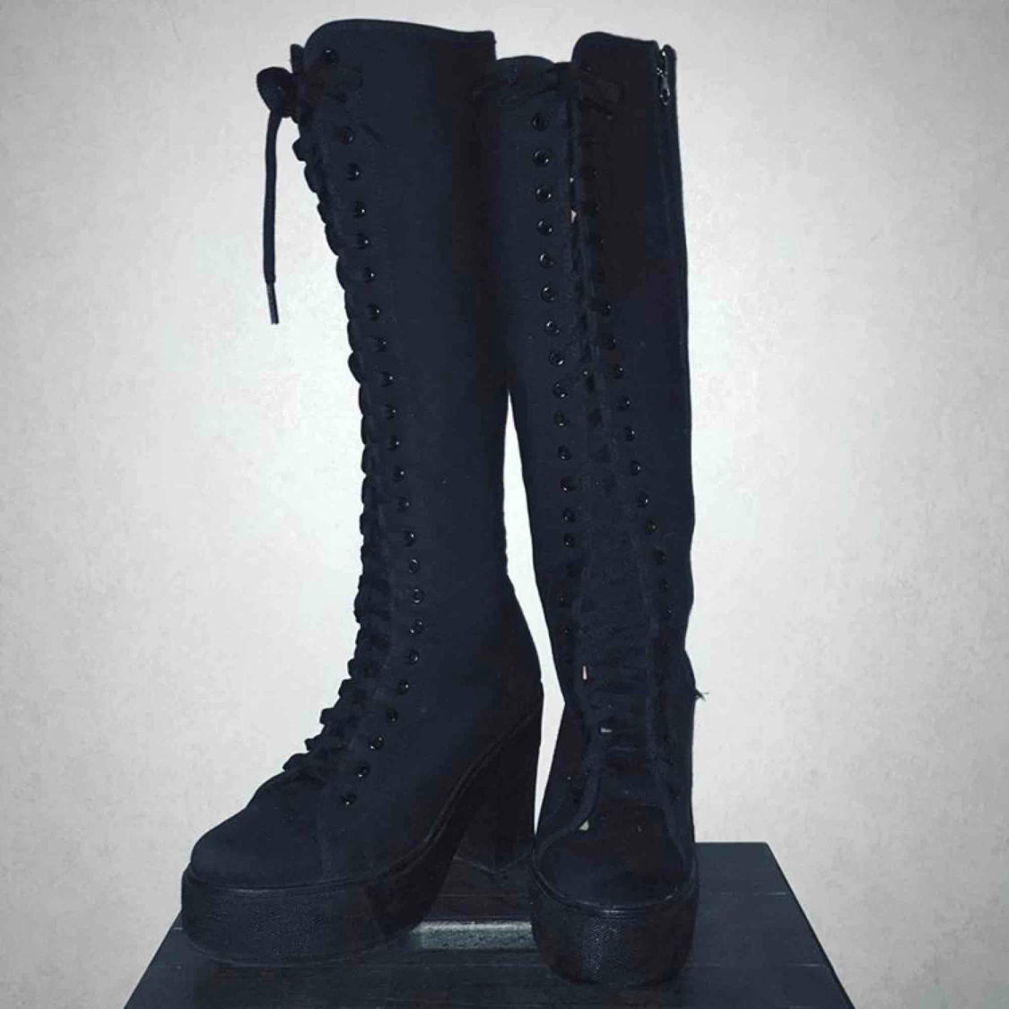 Svarta boots stövlar med klack - Trendiga helt oanvända Svarta klack-boots i mocka liknande material🖤👠slutsålda från boohoo,  storlek 39. Har kvar orginalförpackningen och dem är helt oanvända, säljer då de var för små på mig. Har tyvärr inga bilder när klackarna är på eftersom de inte passade. men säg till om någon annan bild behövs.