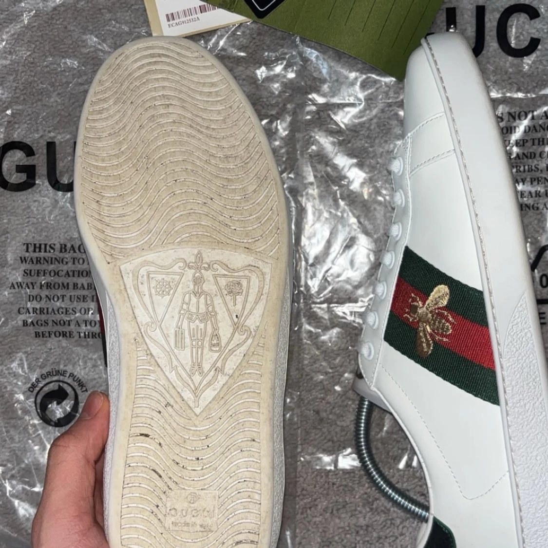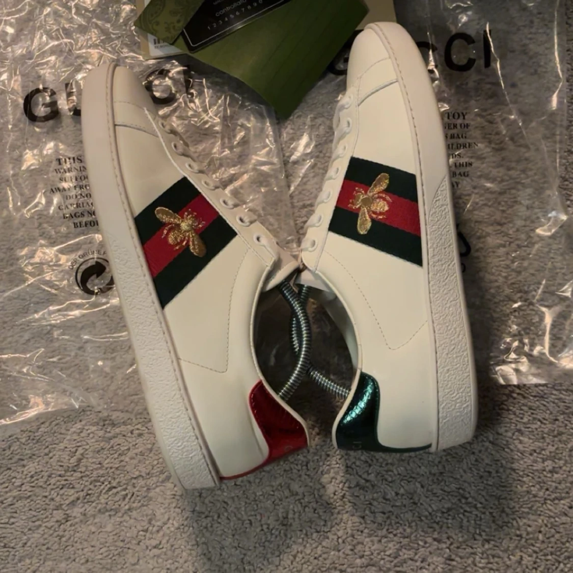 Säljer nu dessa fina Gucci Ace skorna. Riktigt fint skick på skorna. Storlek 42. Har ni frågor eller funderingar så är det bara att höra av sig.