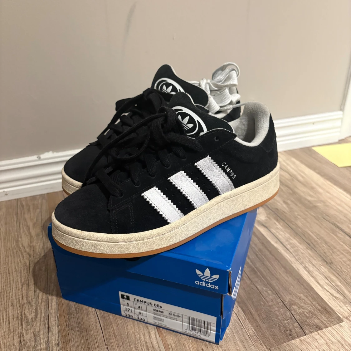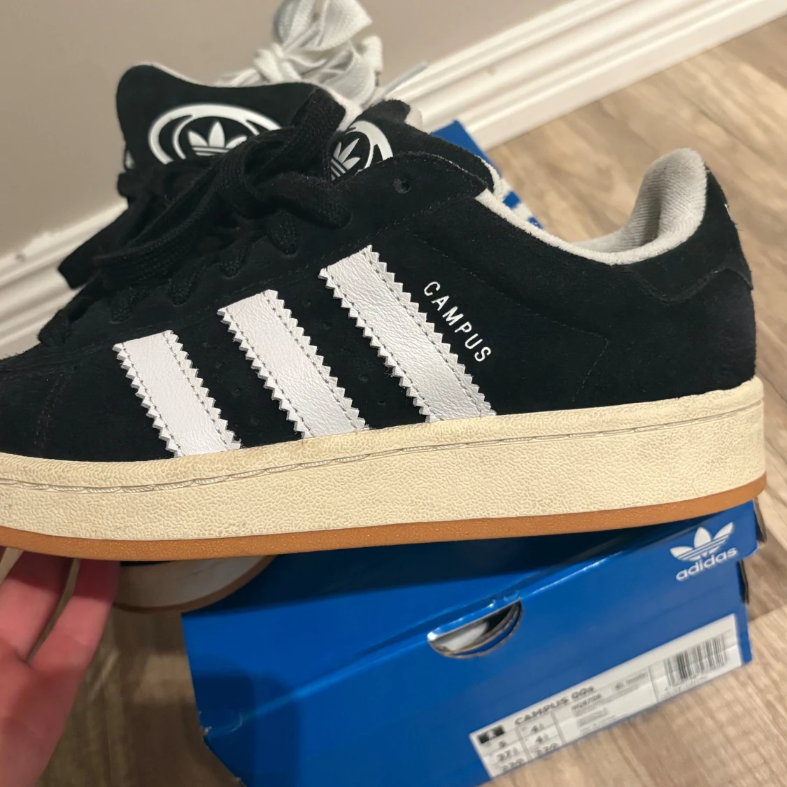 Säljer min Campus 00s då jag inte får användning för dem. Använda ca 10 gånger, så de är nästintill nyskick!! Vita ”tjocka” snören medföljer, dessa är dock något smutsiga (går säkert att tvätta så de blir helt rena). Storlek 37 & 1/3. Men passar som 37!