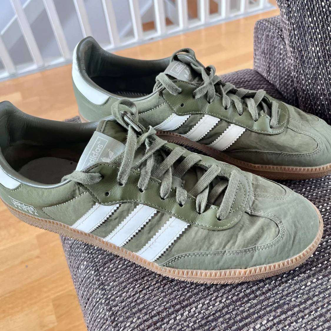 Måttligt använda samaba i udda och snyggt utförande. Läs mer här https://www.farfetch.com/se/shopping/men/adidas/items.aspx