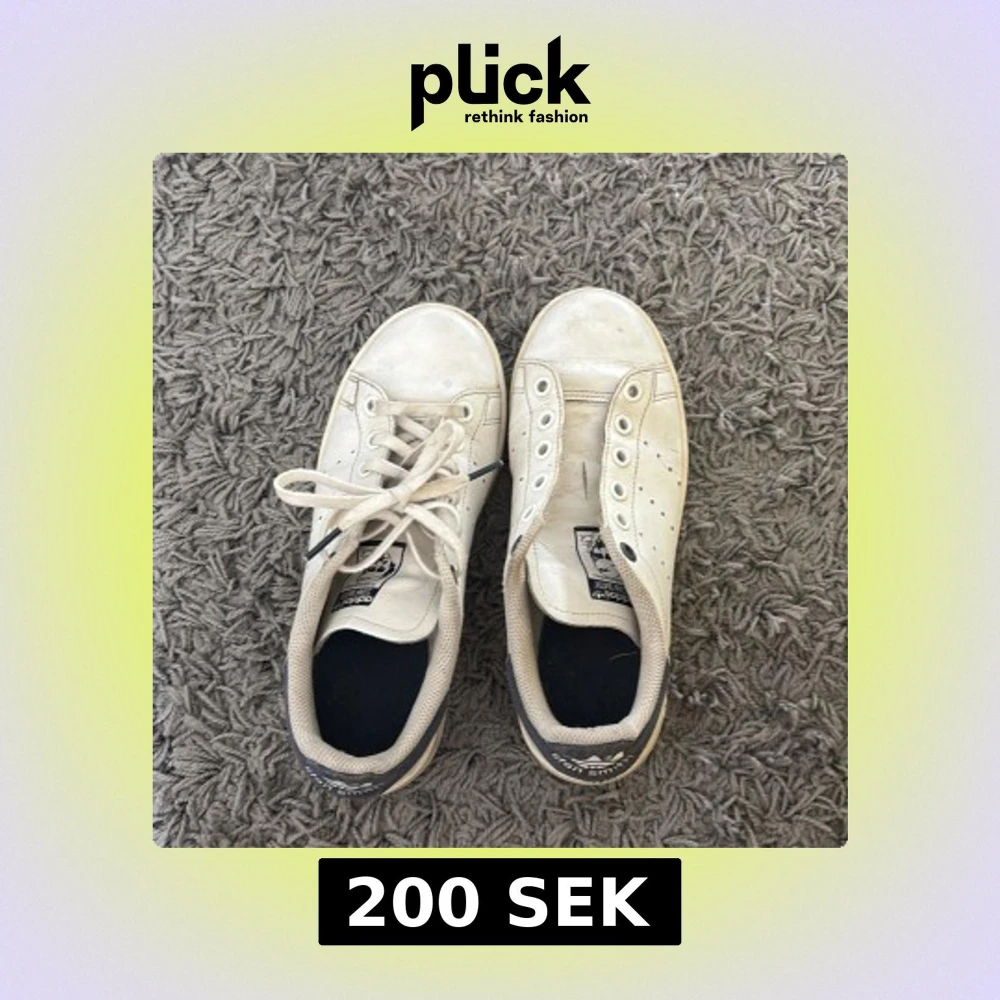 Klassiska vita Adidas Stan Smith sneakers med jeans detalj på hälen. Dock saknar ena skon snören men det är lätt att fixa