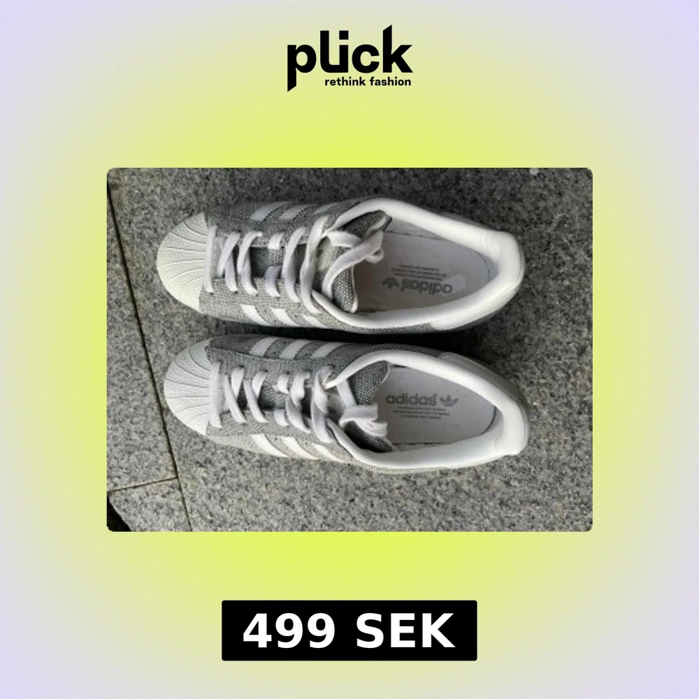 Adidas Superstar sneakers i grått/silver och vitt med klassiska tre ränder på sidan. Skorna har snörning och rund tå. Knappt använda. Perfekt för dig som gillar retrostil och streetwear.