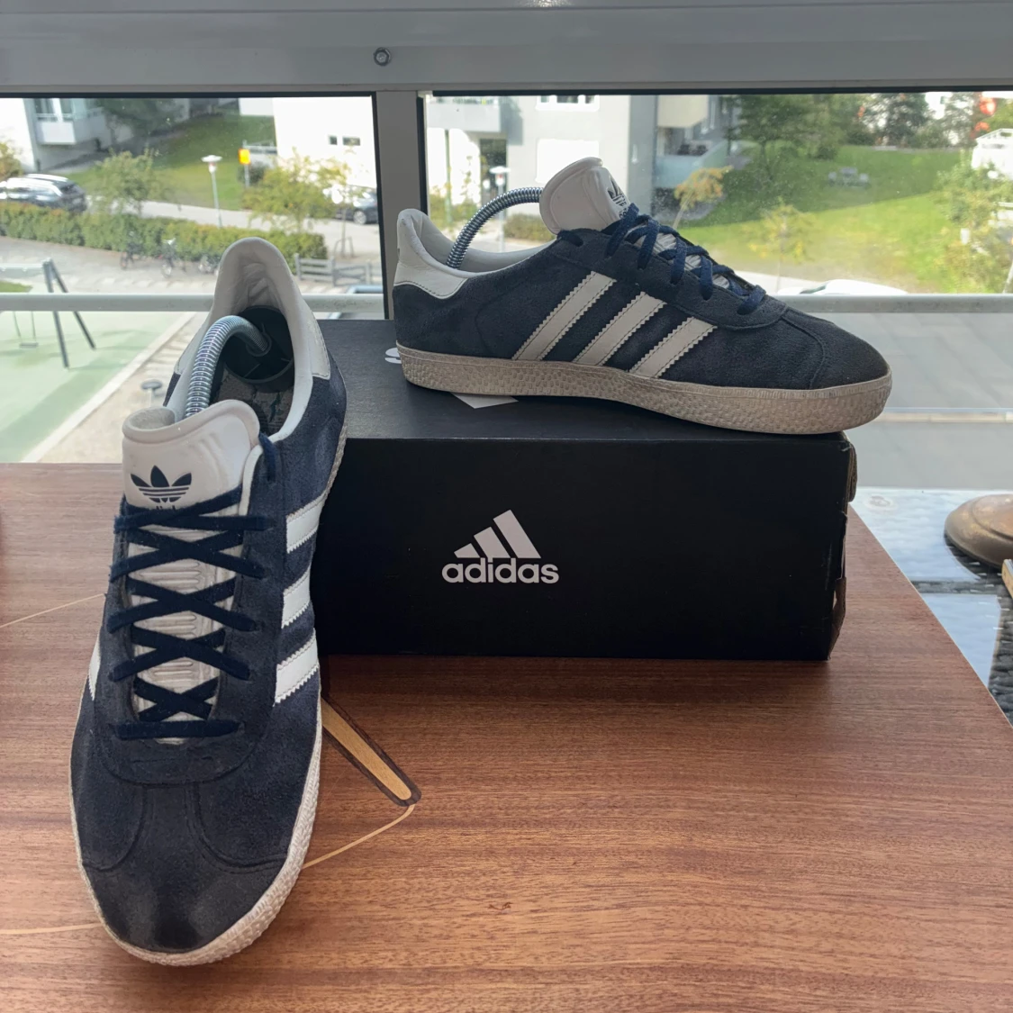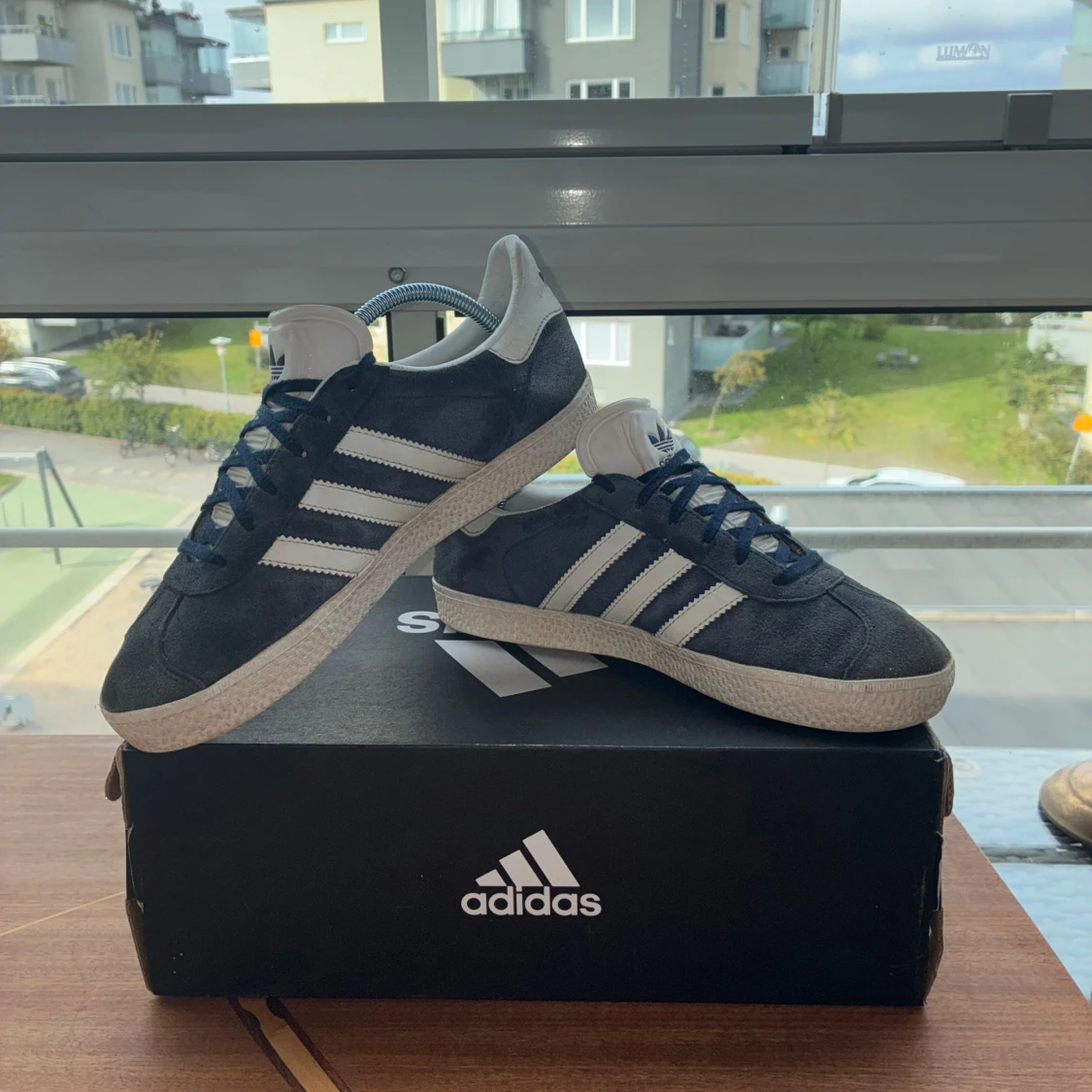 Använda men fortfarande fräscha Mörkblåa Adidas Gazelle skor Storlek 37 1/3 men passar mer som 38 Skriv för frågor eller prisförslag😊