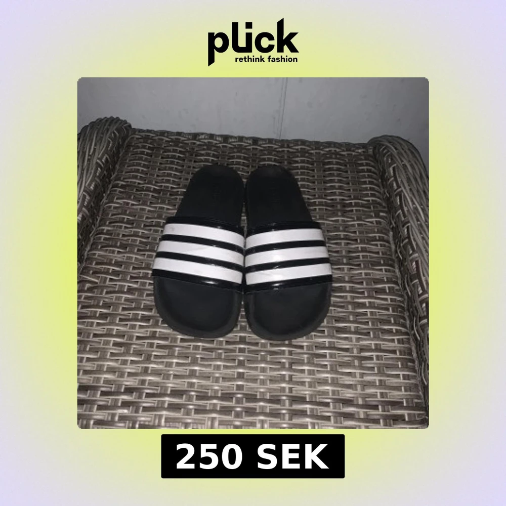 Svarta och vita Adidas tofflor