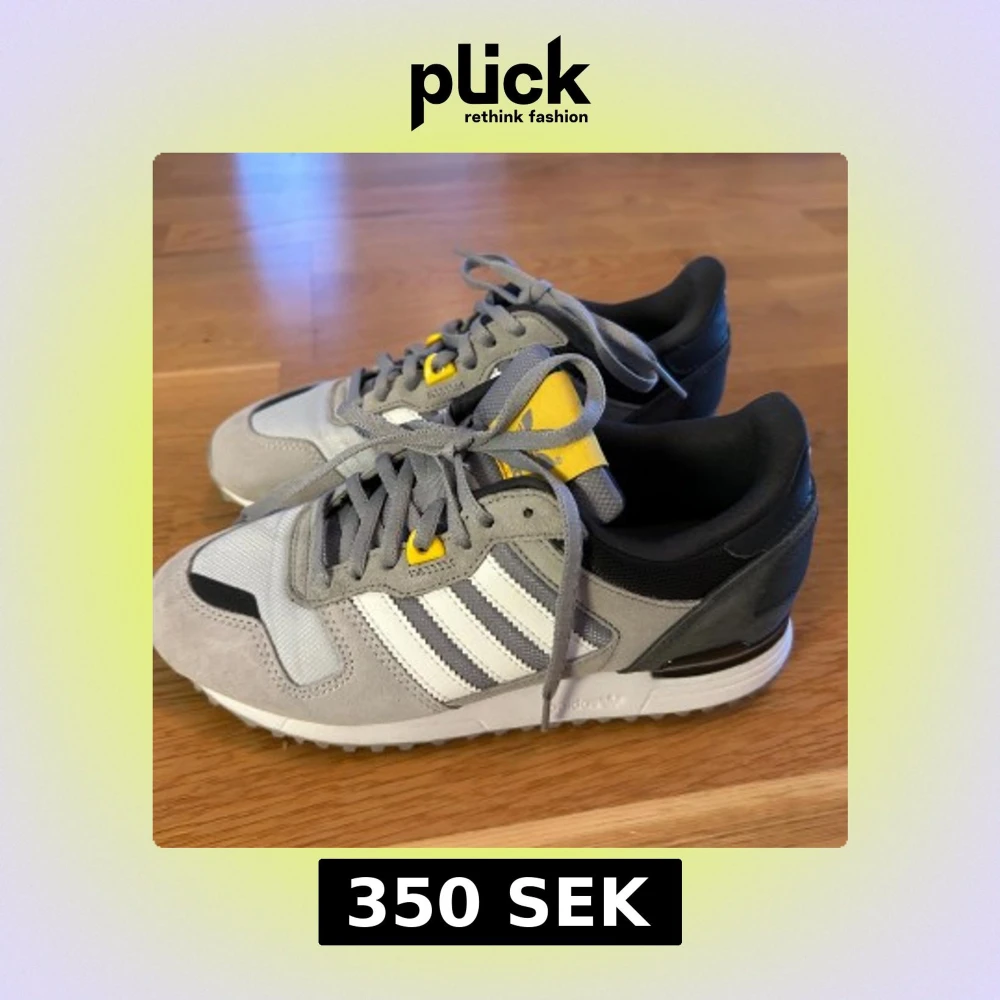 Snygga Adidas sneakers i grått, vitt och svart med gula detaljer. Skorna har klassiska tre ränder på sidan, snörning och en mix av mocka och syntetmaterial. Perfekta för dig som gillar retrostil och bekväma skor med coola färgdetaljer.