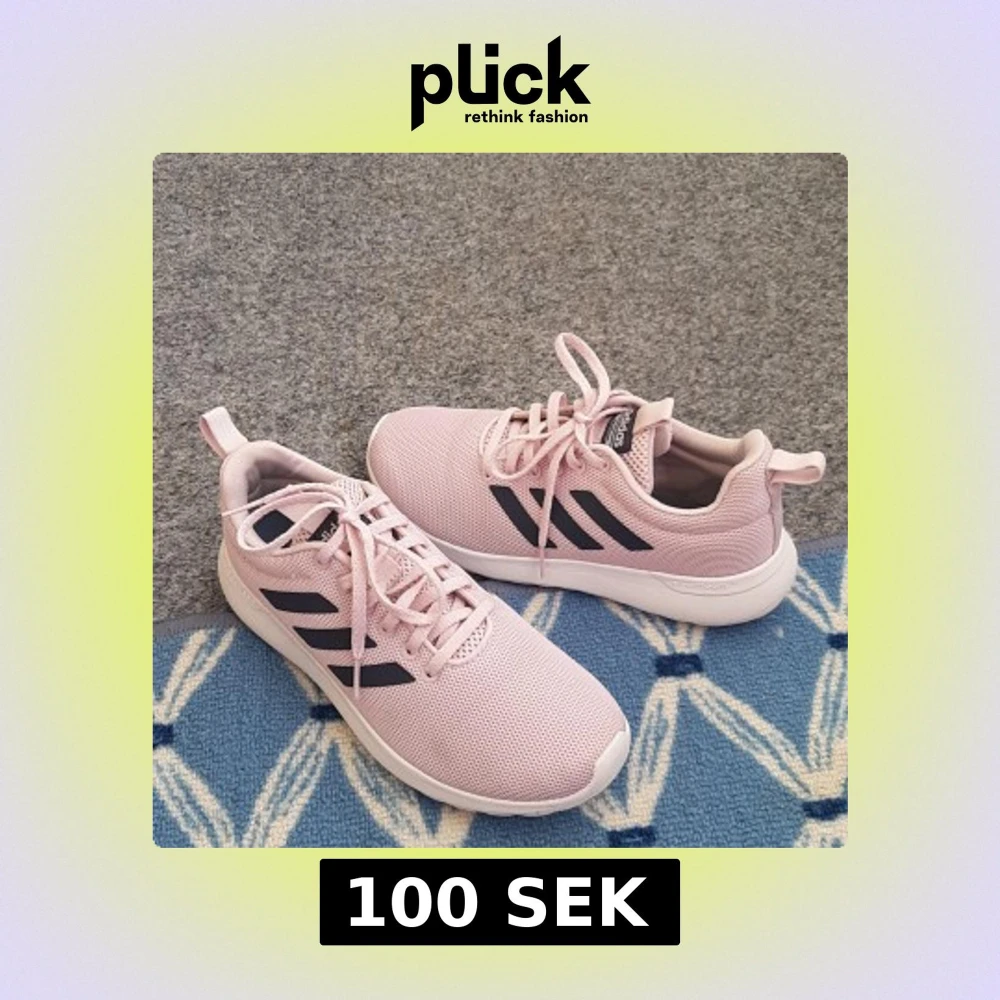 Snygga ljusrosa Adidas sneakers med svart logga och klassiska tre ränder på sidorna. Ovandel i ventilerande mesh, vit platt sula och snörning. Perfekta för dig som gillar sportig och fräsch stil. Cloudfoam-dämpning för extra komfort.