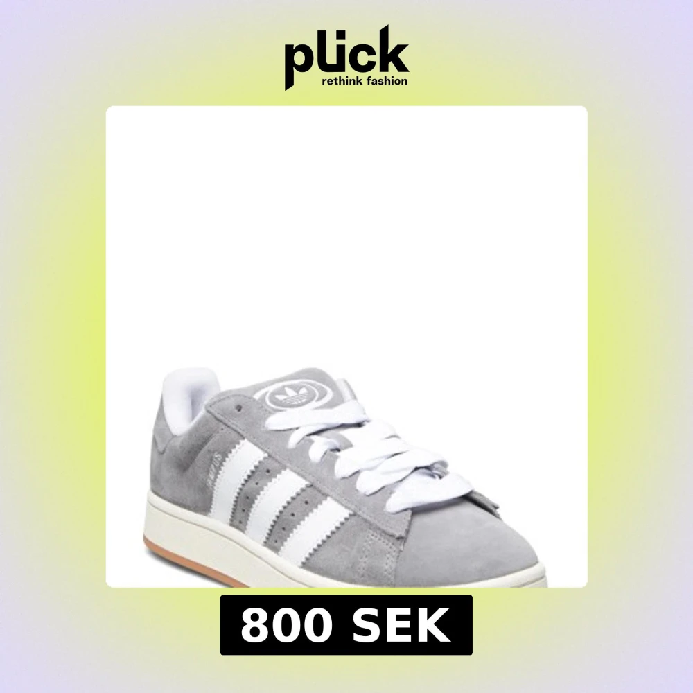 Säljer ett par grå Adidas Campus sneakers med klassiska vita ränder på sidorna och breda vita snören. Skorna har en låg profil och är gjorda i mocka med vit sula. Perfekta för dig som gillar en clean och stilren look. De är inte så smutsiga som det ser ut som på bilden…