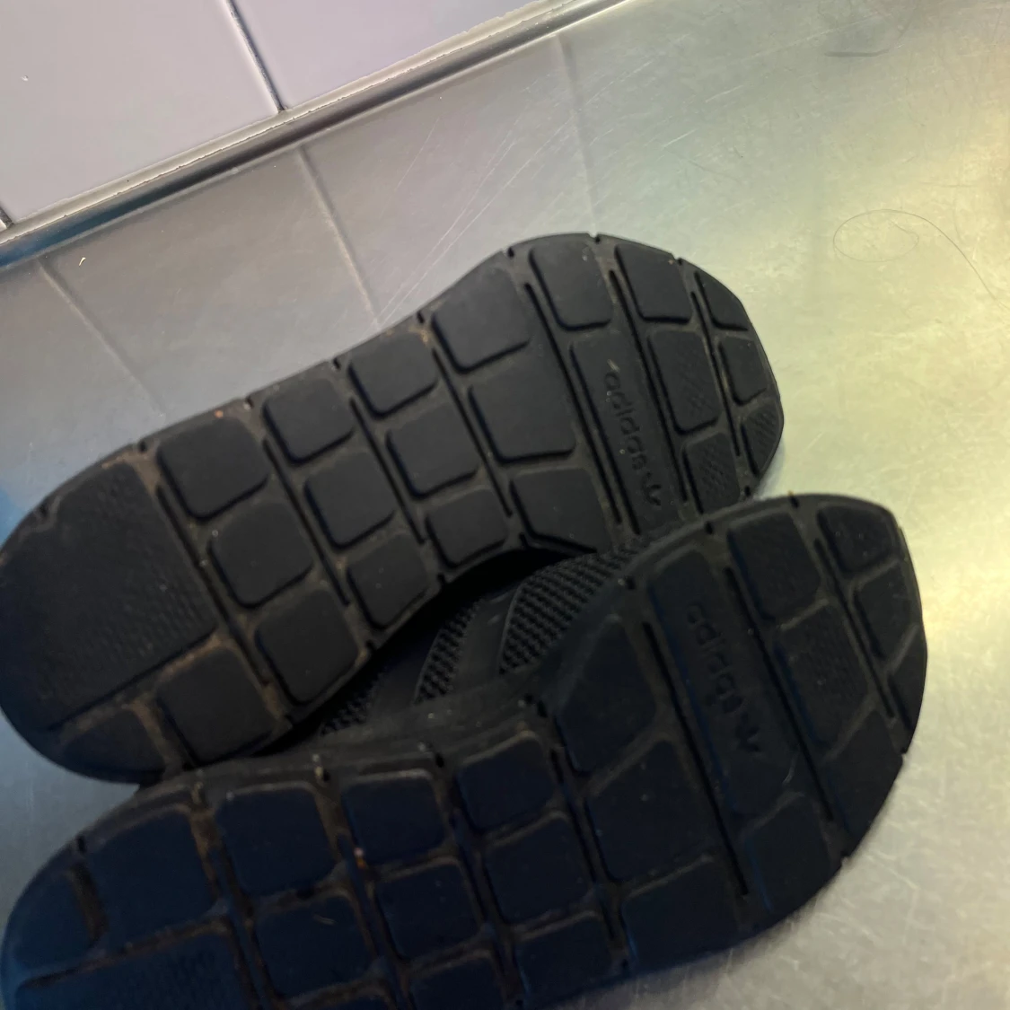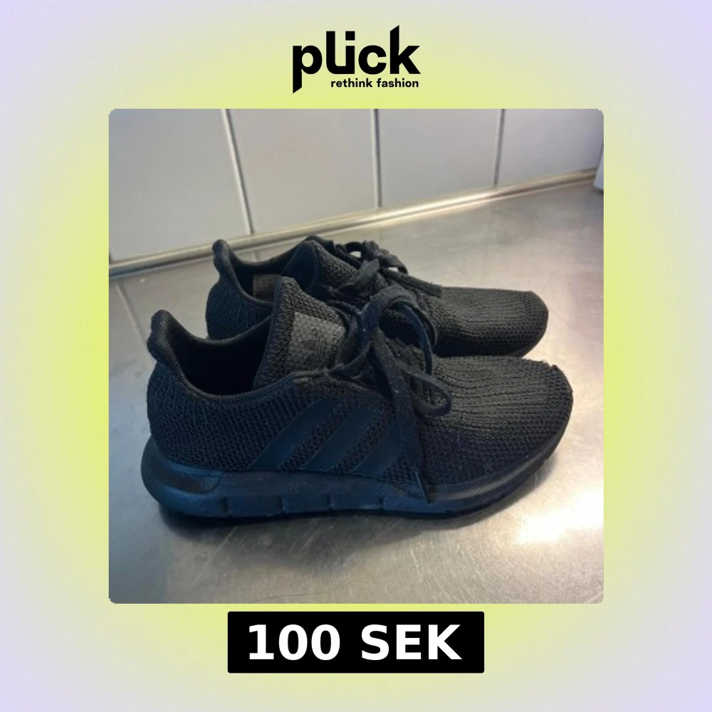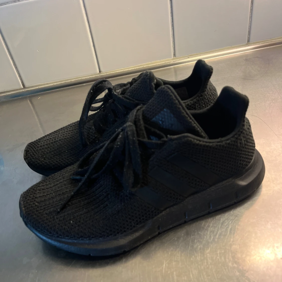 Säljer ett par helsvarta Adidas sneakers i storlek 38. Skorna har en stickad ovandel i mesh, klassiska tre ränder på sidan och snörning. Sulan är svart och ger en sportig vibe. Perfekta för dig som gillar stilrena och bekväma skor till vardags. ( skav vid tån )