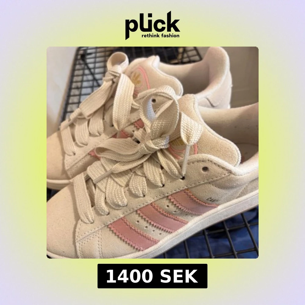 Snygga Adidas Campus sneakers i beige mocka med rosa ränder. Oanvända, då de är för små för mig