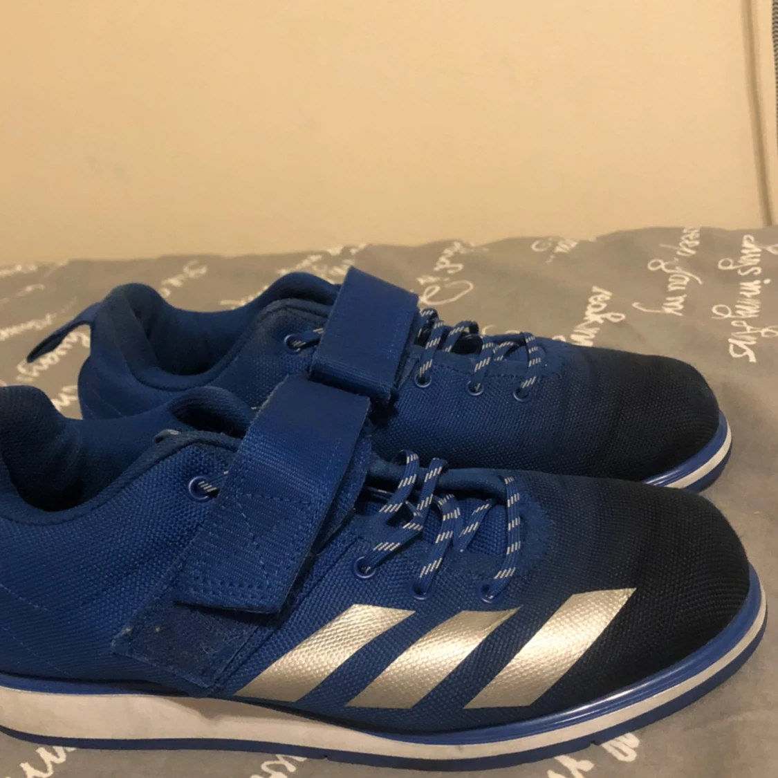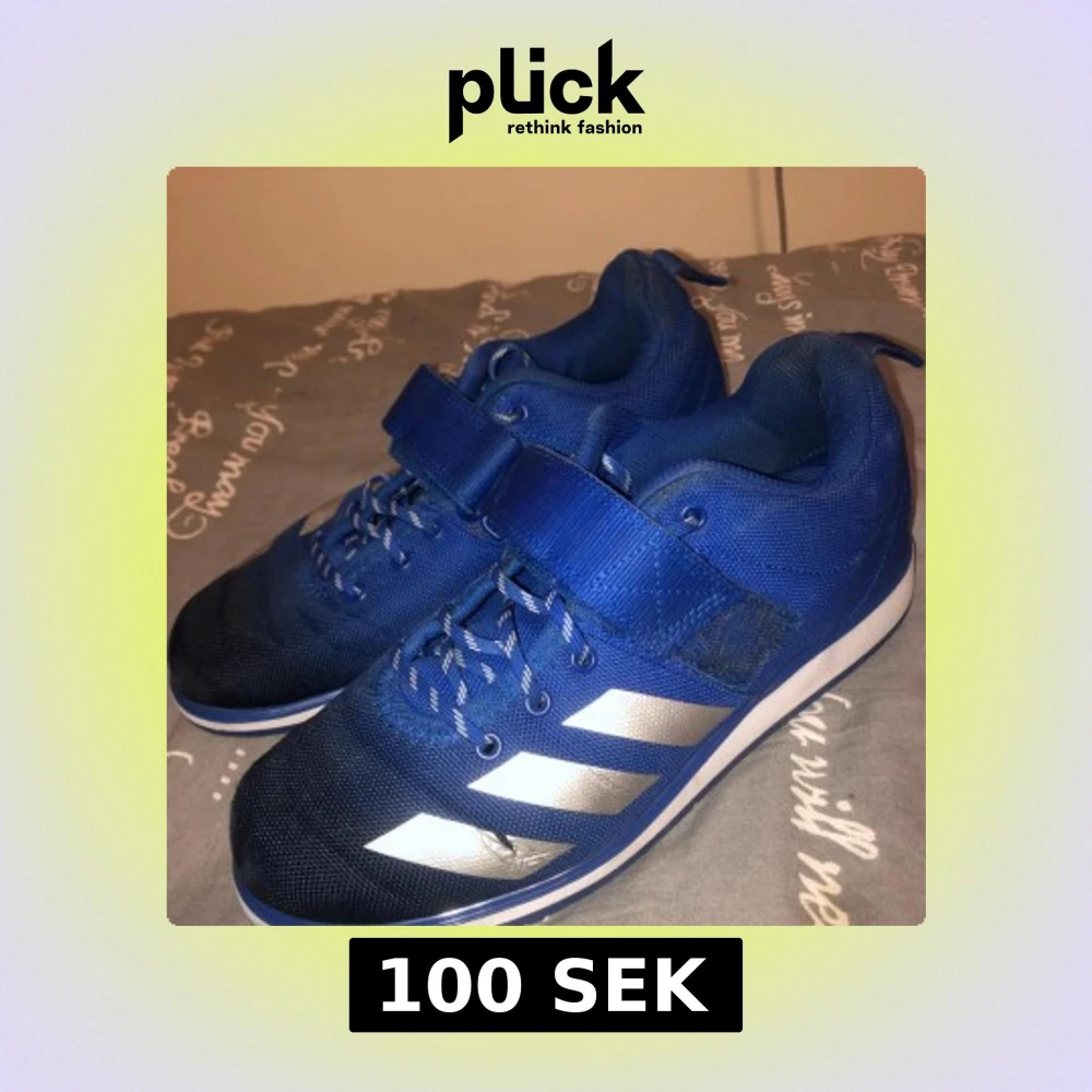 Blå lyftarskor från adidas i storlek 39. Bra skick och inte använda på länge.