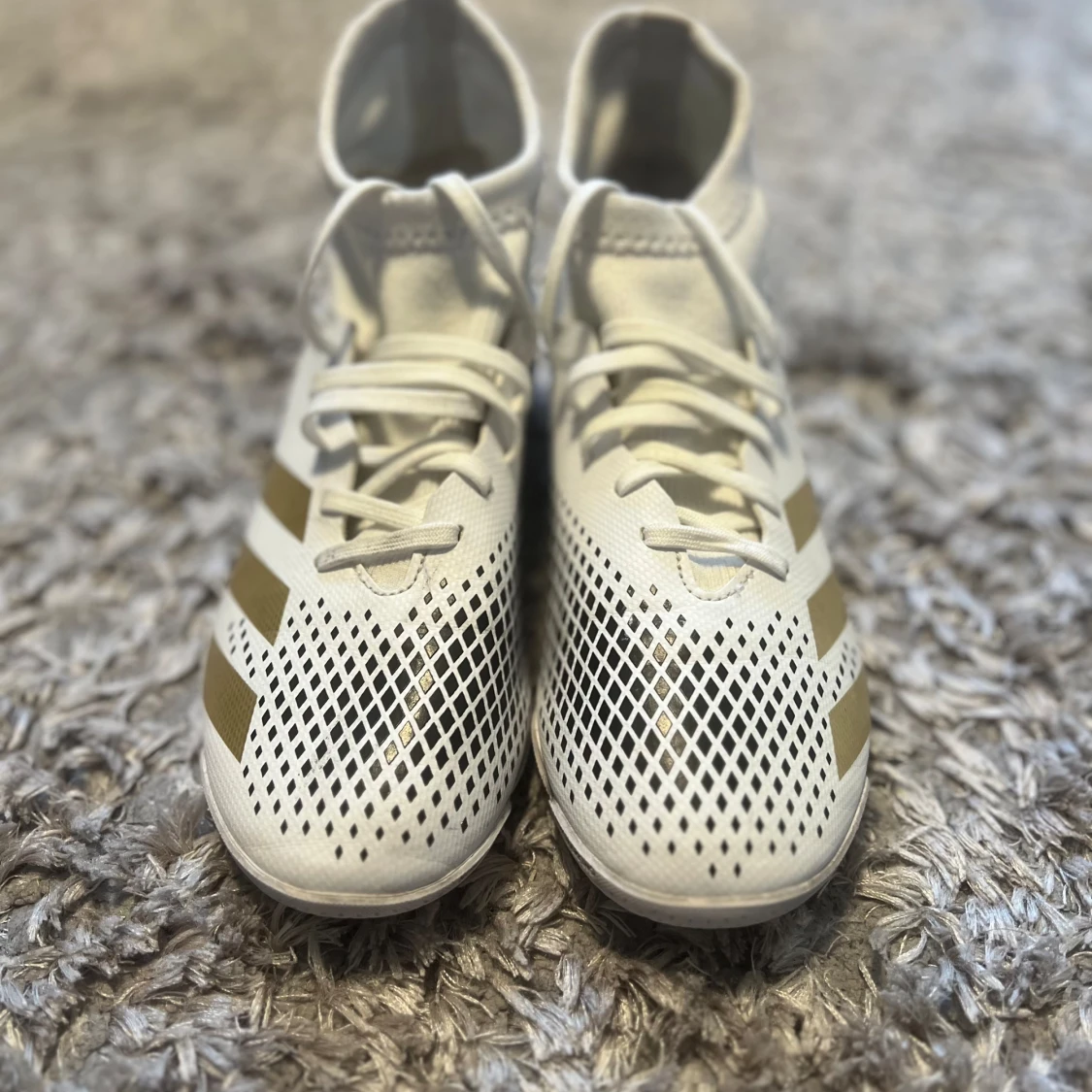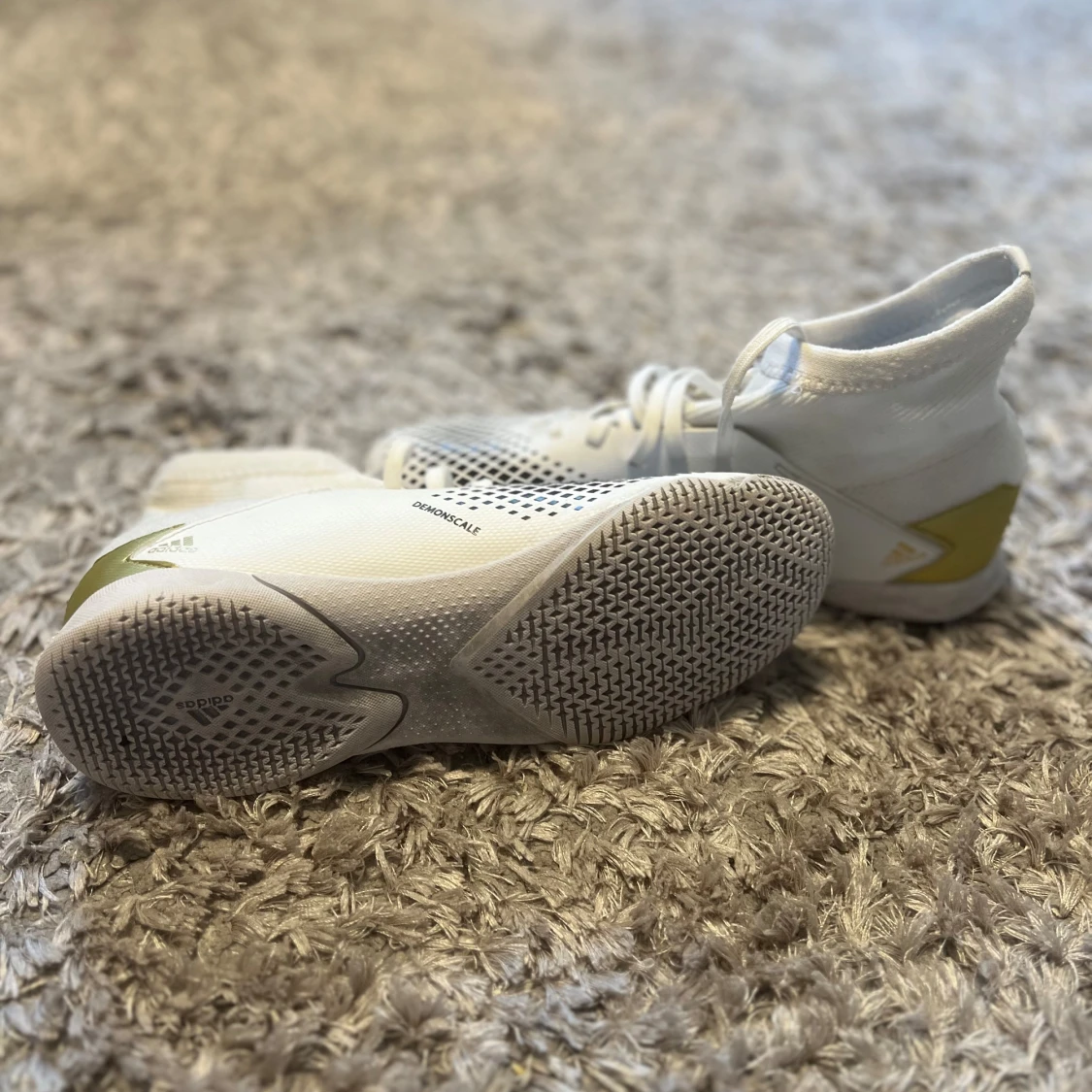 Säljer mina adidas inhomhus fotboll skor då den är små på mig dem är i fin skick och priset kan diskuteras, medföljer extra snören helt nya vita
