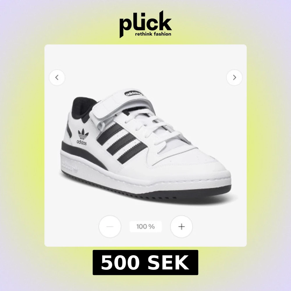 Säljer ett par Adidas Forum Low sneakers i vitt med svarta detaljer. Skorna har snörning och kardborreband, knappt använda då de var för små för mig tyvärr, kan gå ner i pris :)
