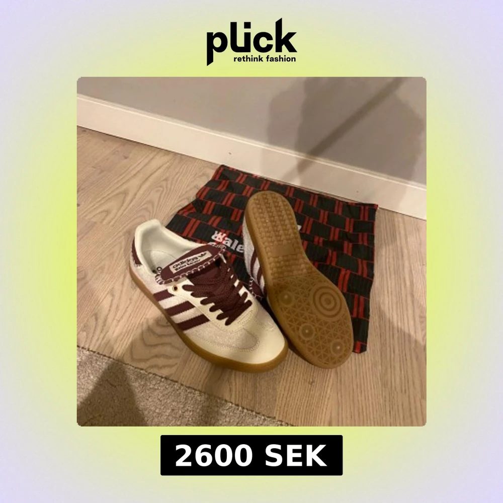 Jag köpte Adidas Samba Wales Bonner sneakers i vitt och vinrött med klassiska tre ränder på sidan, brun gummisula och unika broderade detaljer på plösen Skorna har snörning och är tillverkade i skinn och mocka för en stilren och sportig look. Skorna är fördetmästa oanvända eftersom att skorna laddade inte mig och kunde inte lämna tillbaka pga jag hade slängt lådan jag köpte dessa för 3300kr nypris 🙌
