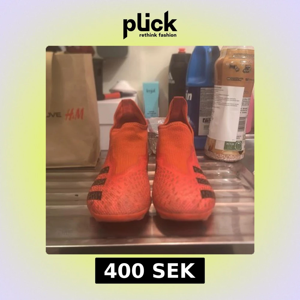 Snygga och sportiga Adidas Predator fotbollsskor i en iögonfallande orange färg med svarta detaljer. Skorna har en strumpliknande passform utan snörning och är designade för att ge bra grepp på planen. Perfekta för fotbollsspelare som vill ha både stil och funktion.
