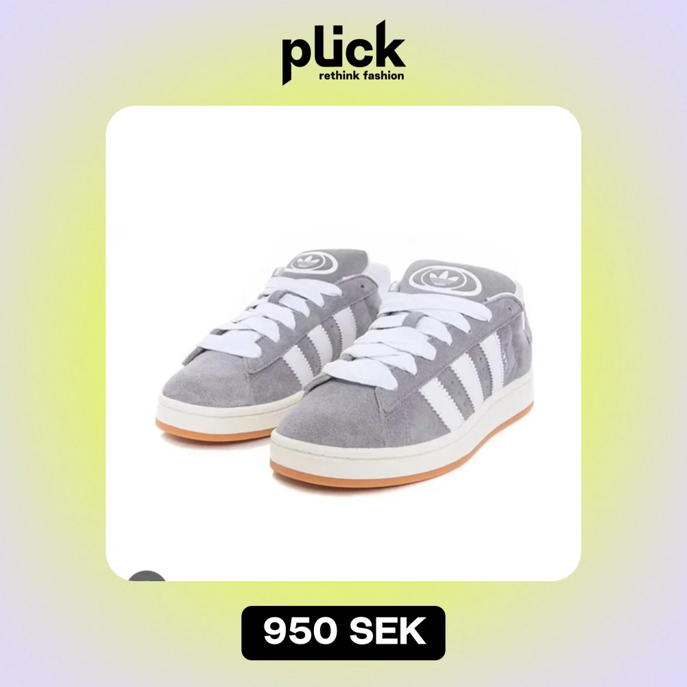 Snygga grå Adidas sneakers i mocka med vita detaljer och klassiska ränder. De har en bekväm passform och vit sula med gummidetaljer. Perfekta för vardagsbruk eller en avslappnad stil. Skorna har snörning för en justerbar passform.