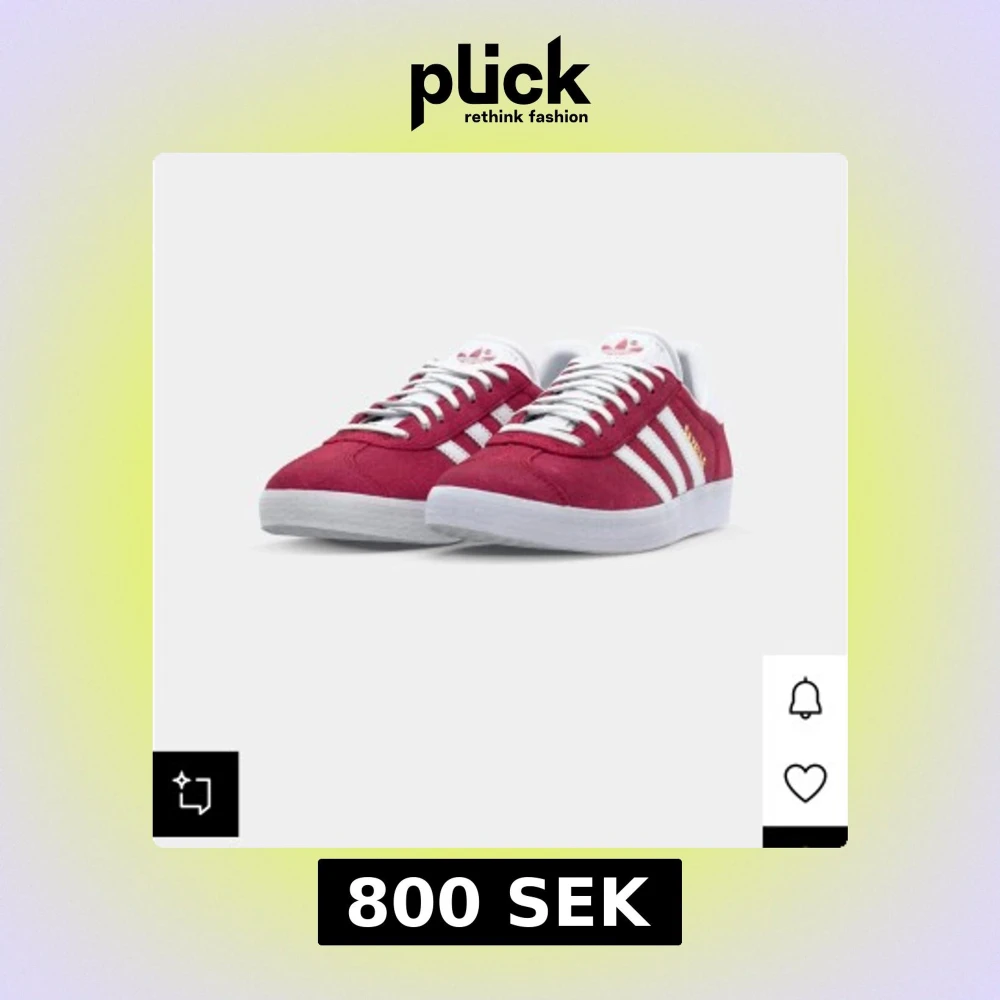 Adidas Gazelle sneakers i vinrött mocka med klassiska vita ränder och vit sula. As snygg, säljer för att de tyvärr inte kommer till användning. Använt kanske 5 gånger ungefär. Nypris: 1395:-