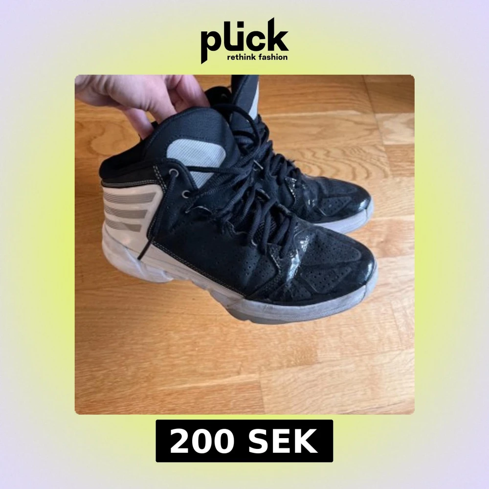Svarta Adidas sneakers med vita detaljer och snörning. Sparsamt använda innan de blev för små. Kan hämtas i Årstaberg Stockholm.