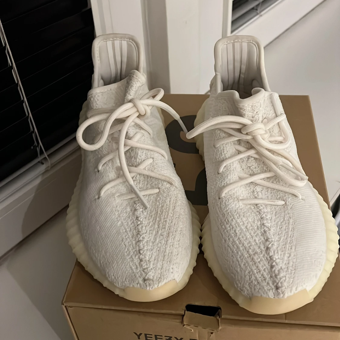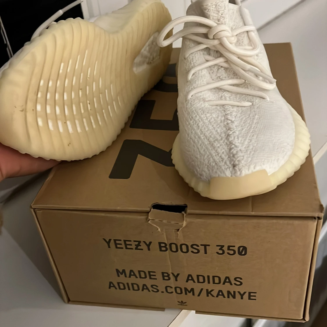 Säljer ett par Adidas Yeezy Boost 350 i färgen Triple White. Skorna har en stickad ovandel i vitt, rund tå, snörning och en tjock, ribbad sula i ljusbeige. Ikonisk och clean design signerad Kanye West, perfekt för dig som gillar streetwear och sneakers med hype. Använt kanske 1 gång. Storlek 40 men ryms också på 39!!