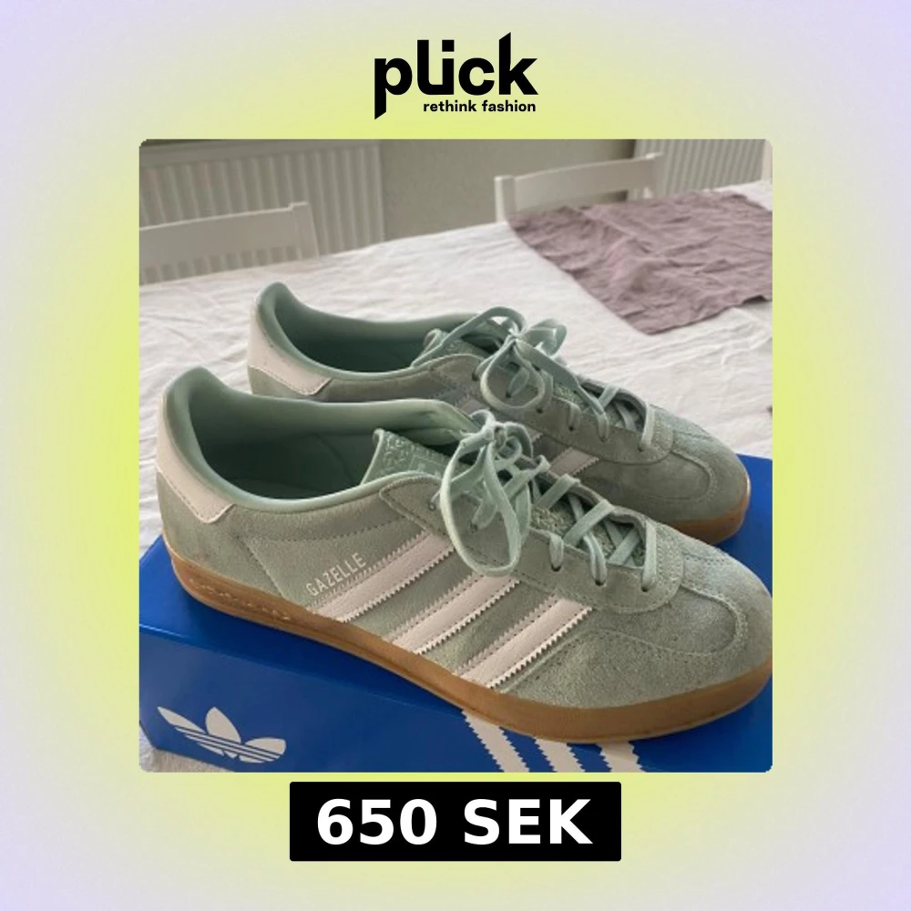Adidas Gazell skor i fint skick. Använda 1 gång så tecken på användning finns, men inget stort! Strl 41 1/3 men skulle säga att de är små i storlek💚