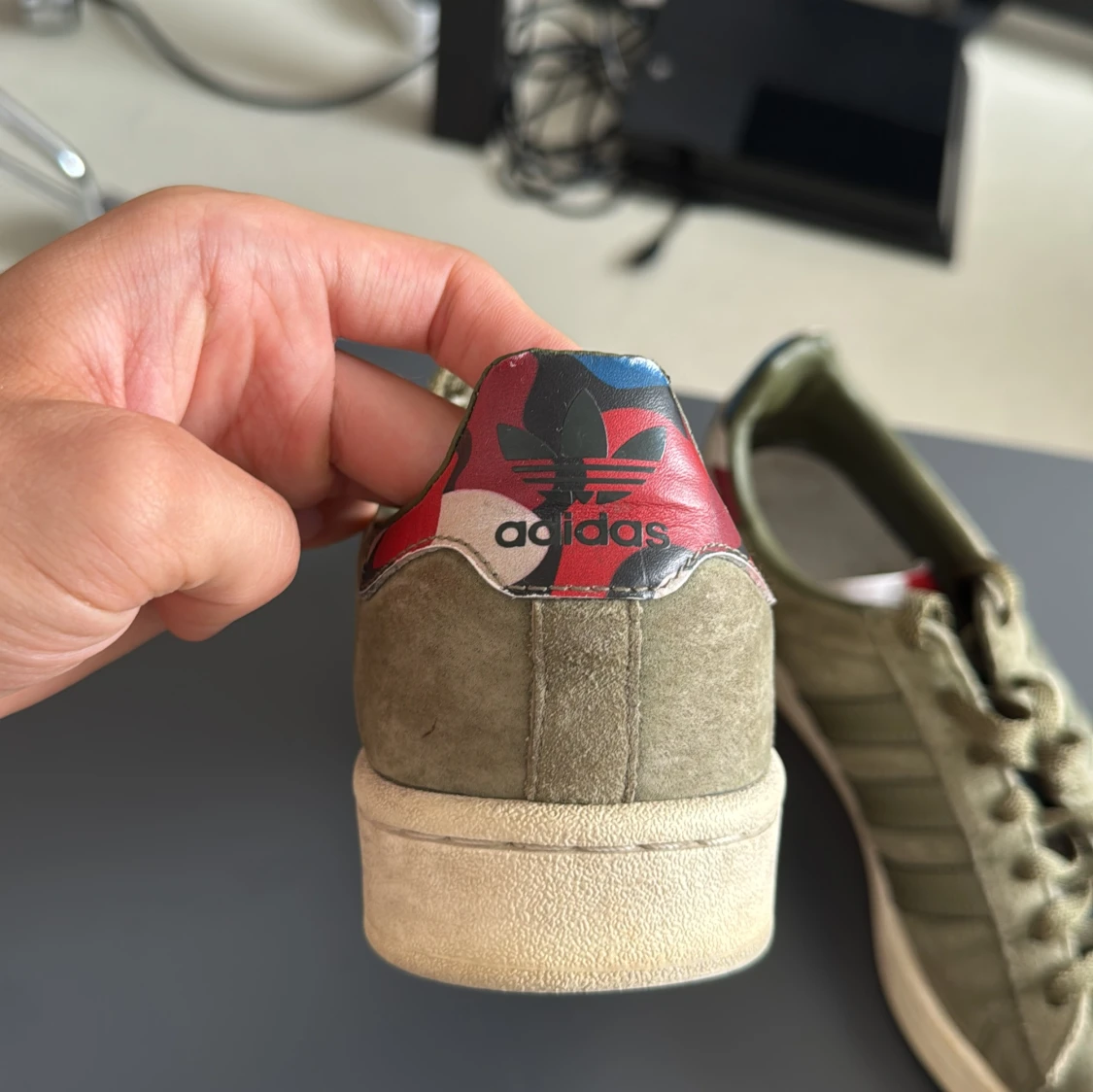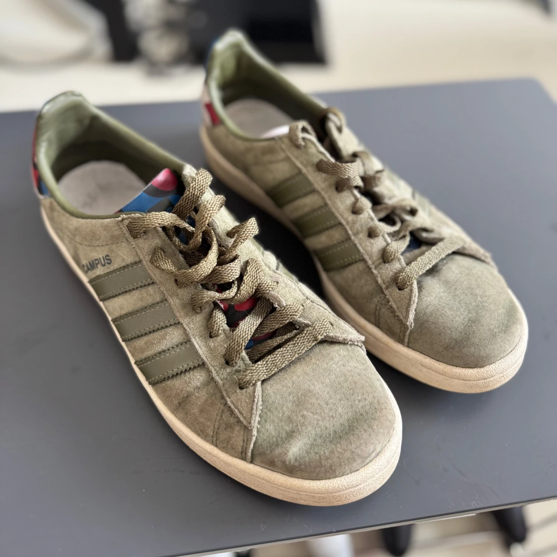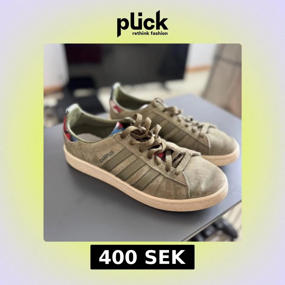 Säljer här ett par sällsynta olivgröna Adidas Campus, i storlek 41 1/3. Mitt pris 400kr. Bra skick.