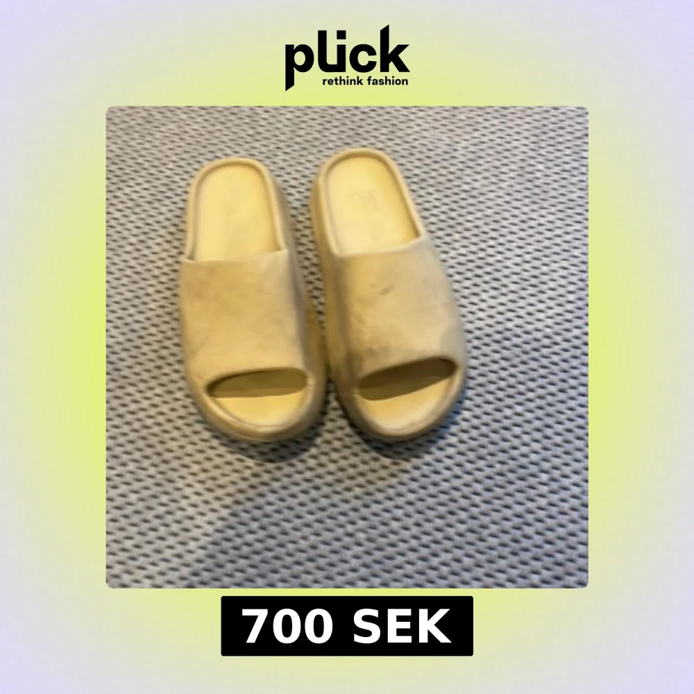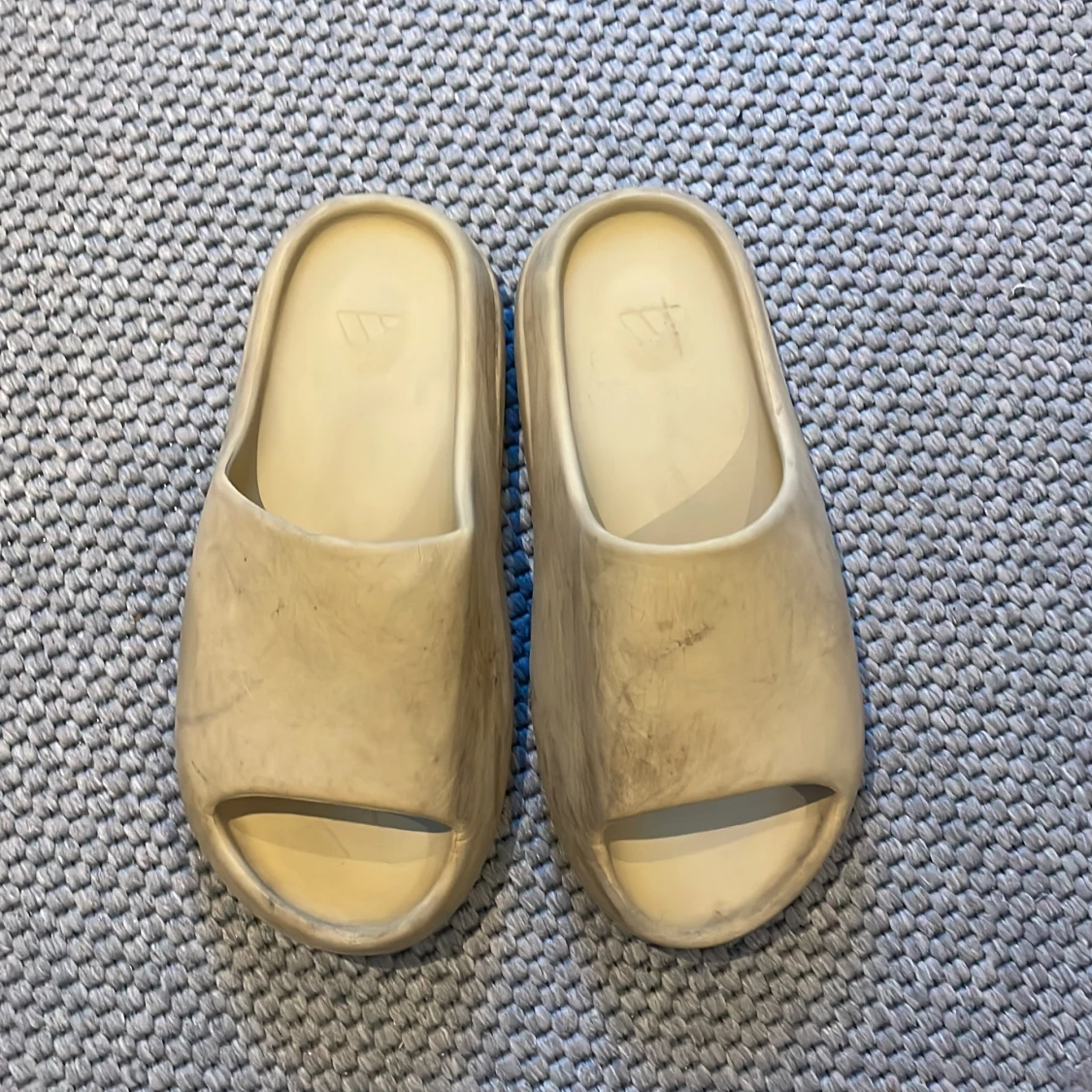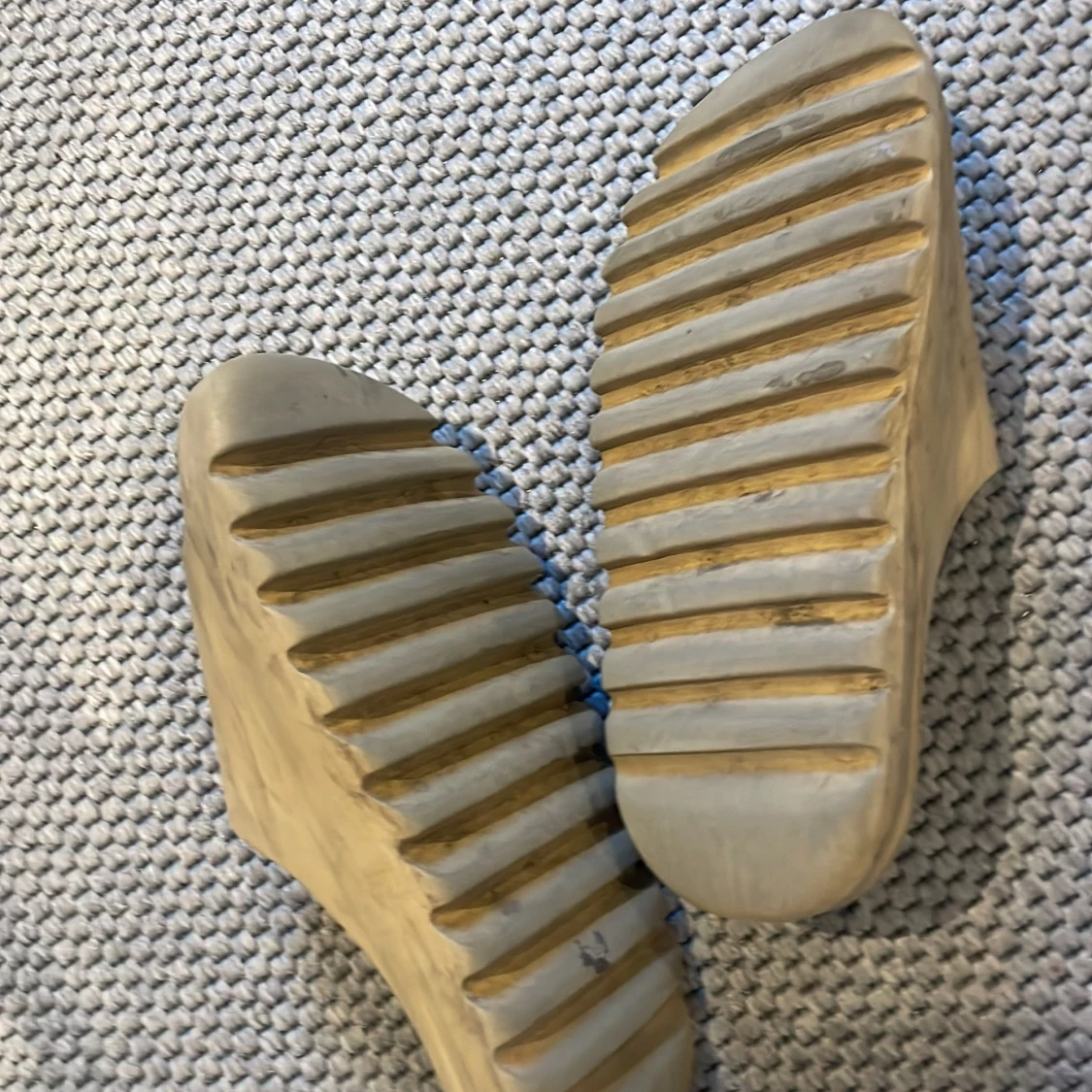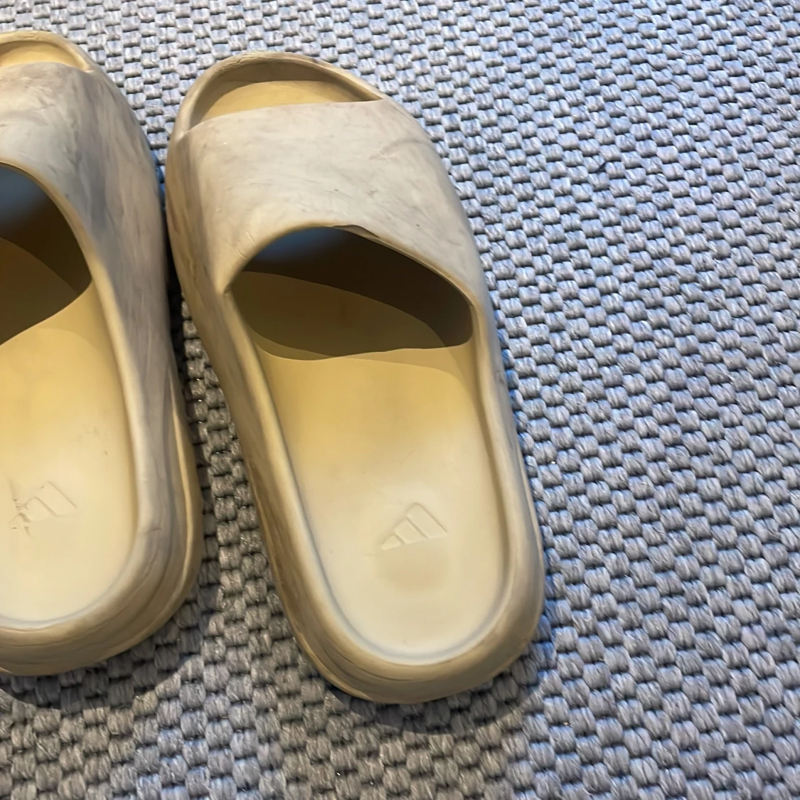 Säljer ett par beige Adidas Yeezy Slides med chunky, Passar 40,5-42 Yeezy-looken.