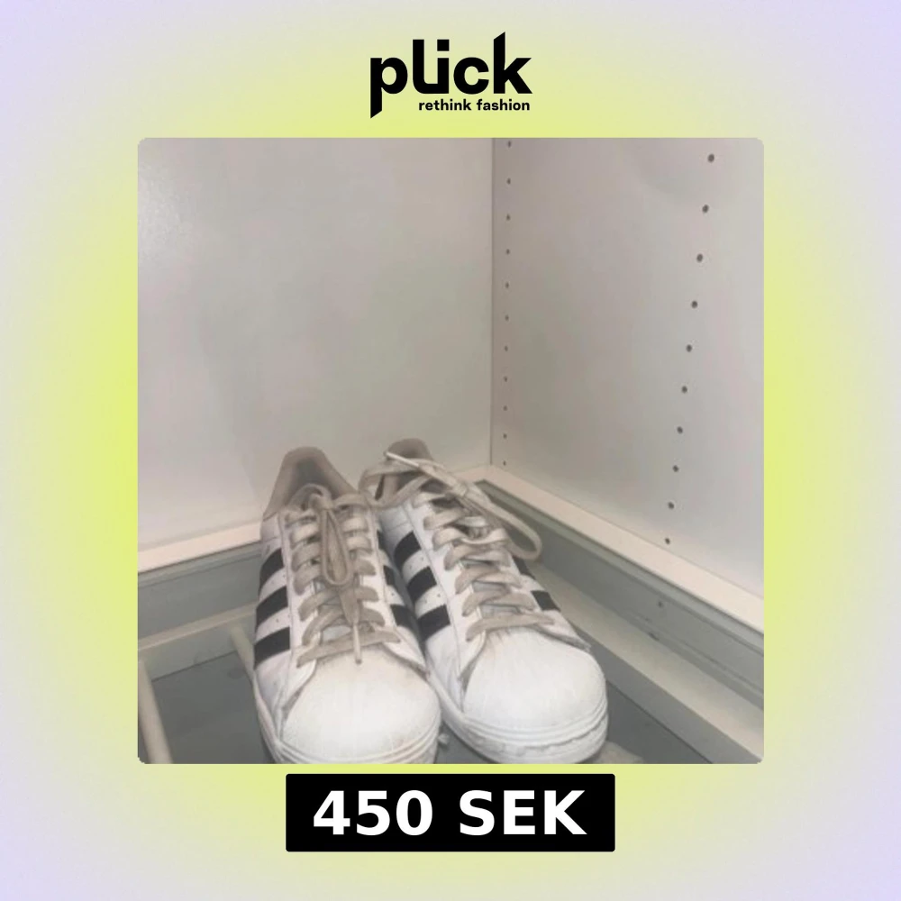 Klassiska Adidas Superstar sneakers i vitt med svarta ränder. Skorna har snörning - Buda eller skriv gärna🧸